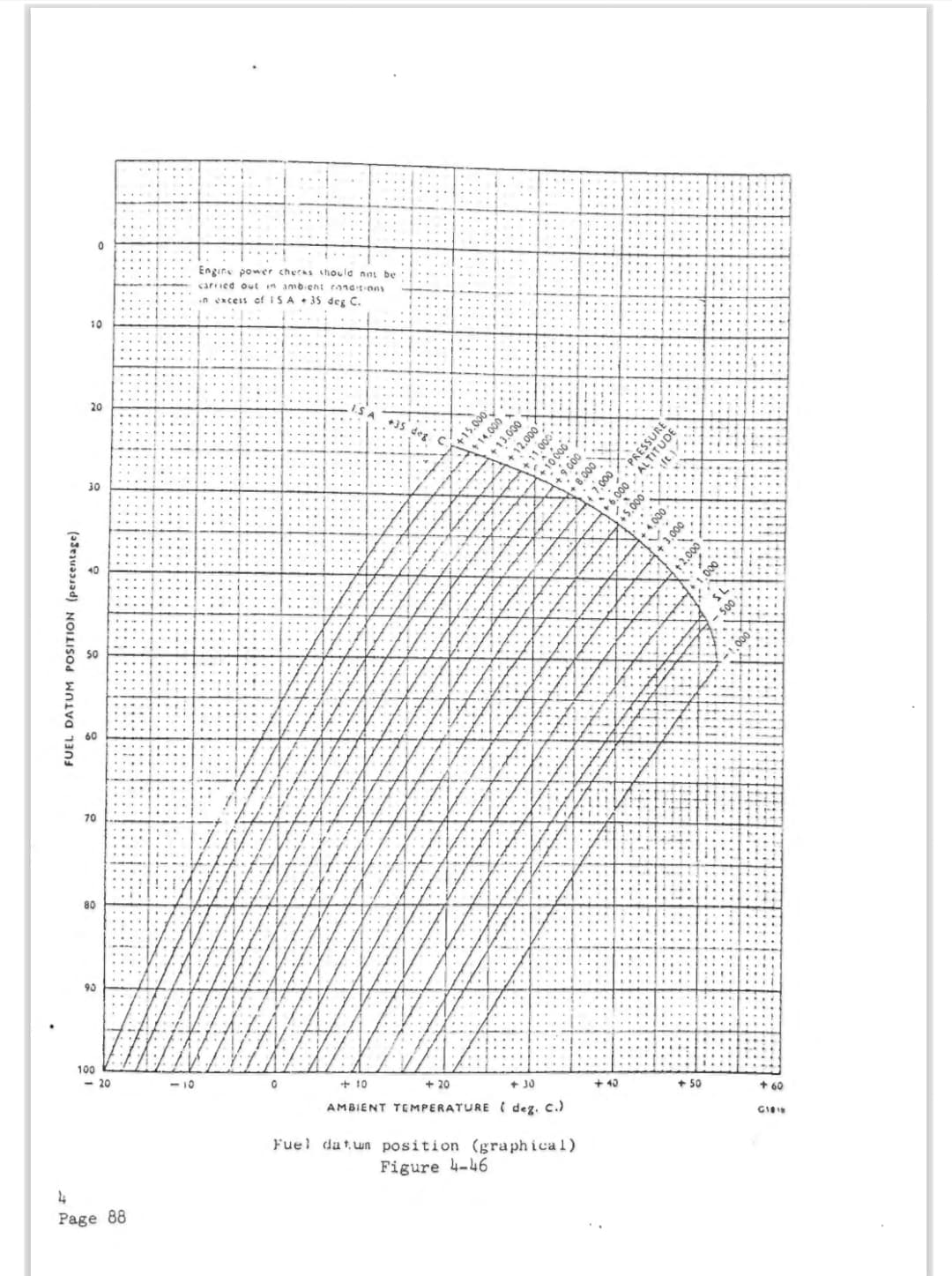 Before engine start, you should set the fuel trim appropriately. The fuel trim can be in any position for the engines to be started. Each operator has their own guidelines for what settings are to be used for engine start, but hereâs a rule of thumb. If the outside air temperature is above 15 degrees centigrade, set the fuel trim for 50% or so. If it is colder, use a setting of 100%. After ignition takes place, you will have to constantly monitor the TGT gauge for the engine being started, and as the TGT rises, you will need to adjust the fuel trim to prevent overheating. You should be able to keep the TGT below the red area. |
