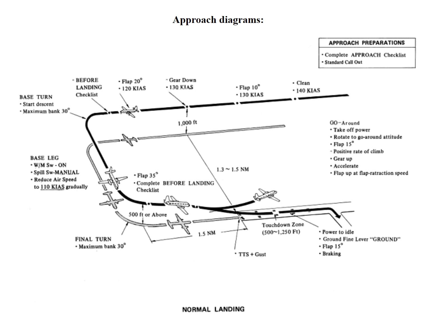 Before landing, you should set the fuel trim to a pre-calculated value. This value can be found from a table that is included in the checklists (see the image below). The purpose of this is to have a correct value set up for a possible go-around situation. When you add full power in a go-around, youâll already have the fuel trim set up so that engines wonât overheat. Please remember, that full the power is 15000 RPM, not firewalling the throttles! |