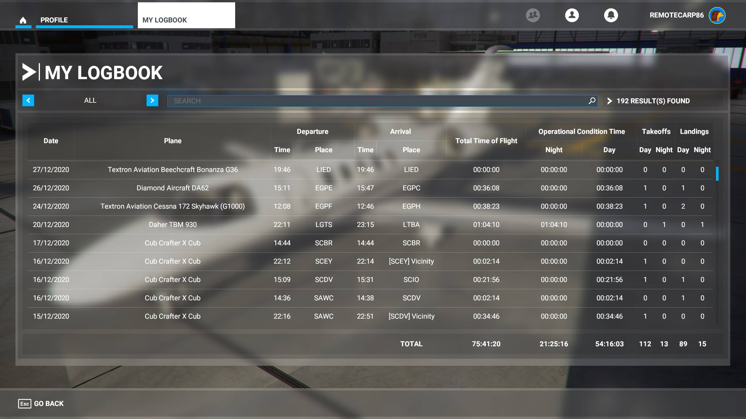 One more stipulation that I heard about. If you press “CONTINUE” after the flight, it probably will not log. Rumor has it that return to main menu will cause it to log.