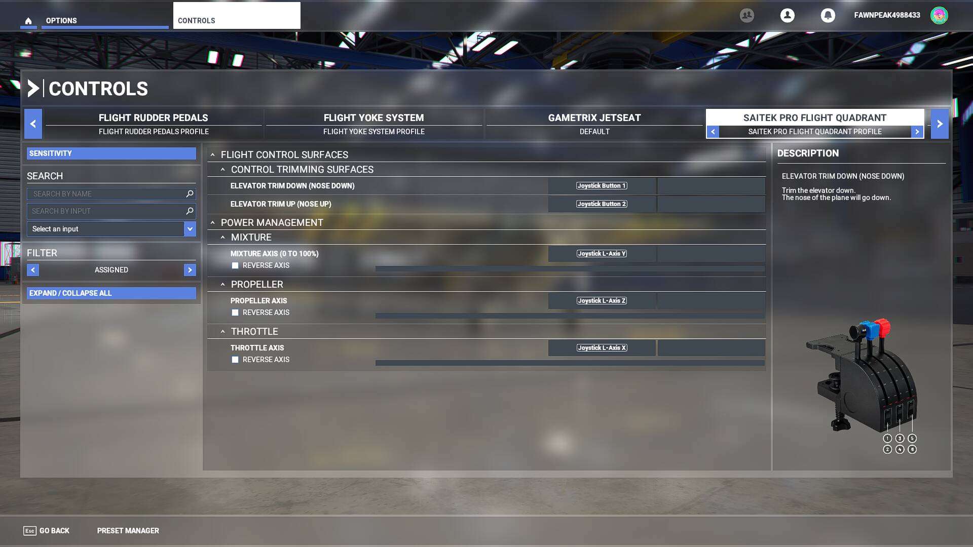 BTW Are the mixture, the propeller and the throttle corresponding to the three joysticks of the quadrant? Those same options were already set from my side and I’m not sure if I’m overriding them with the yoke settings. Also noting that the quadrant doesn’t show up as a separate control here (quadrant options are under the yoke ones).