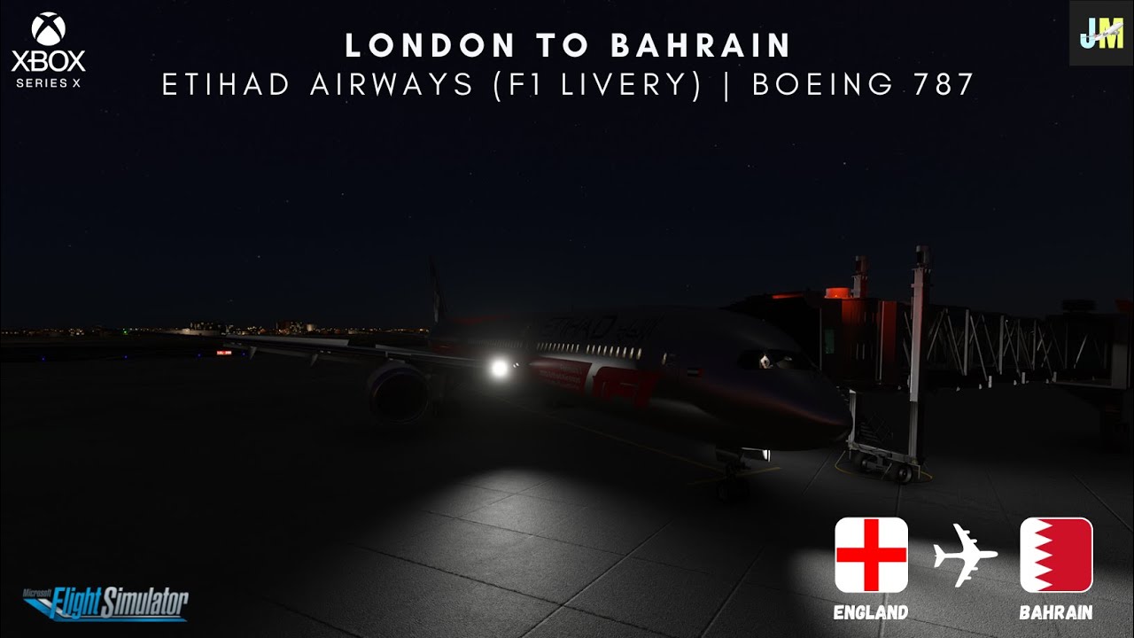 London to Bahrain via Etihad Airways F1 Livery on the Boeing 787 Dreamliner