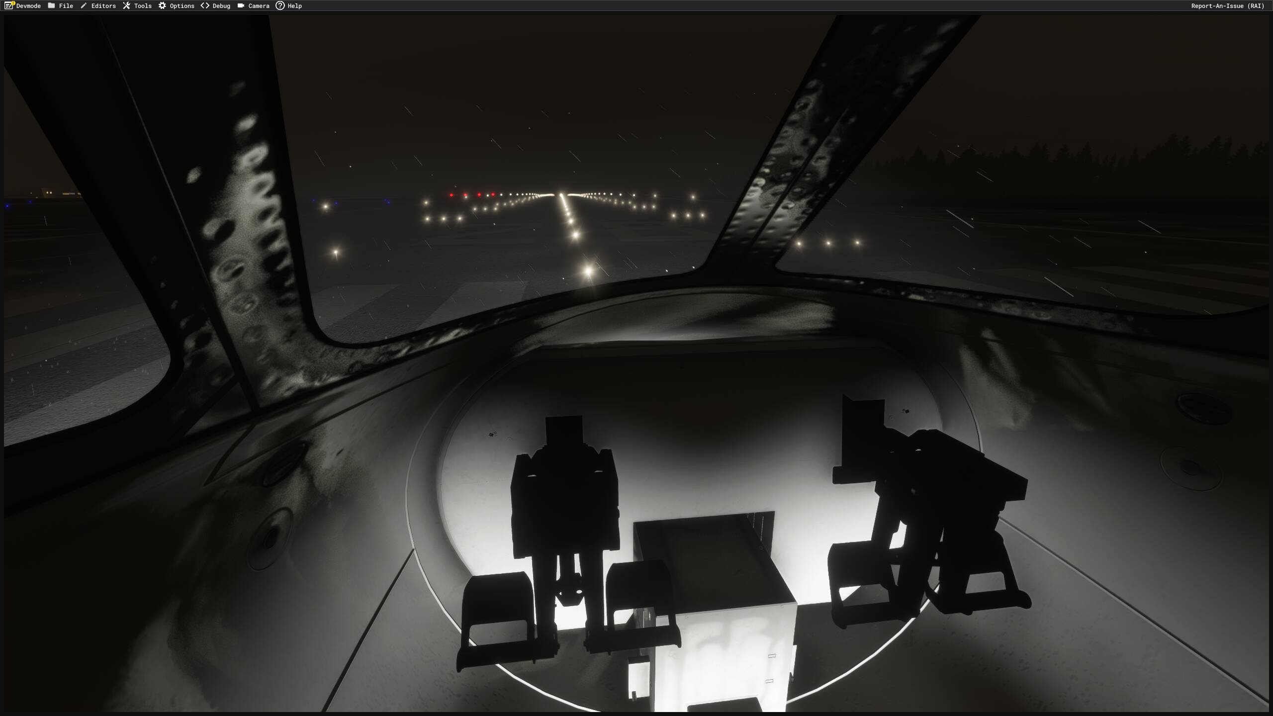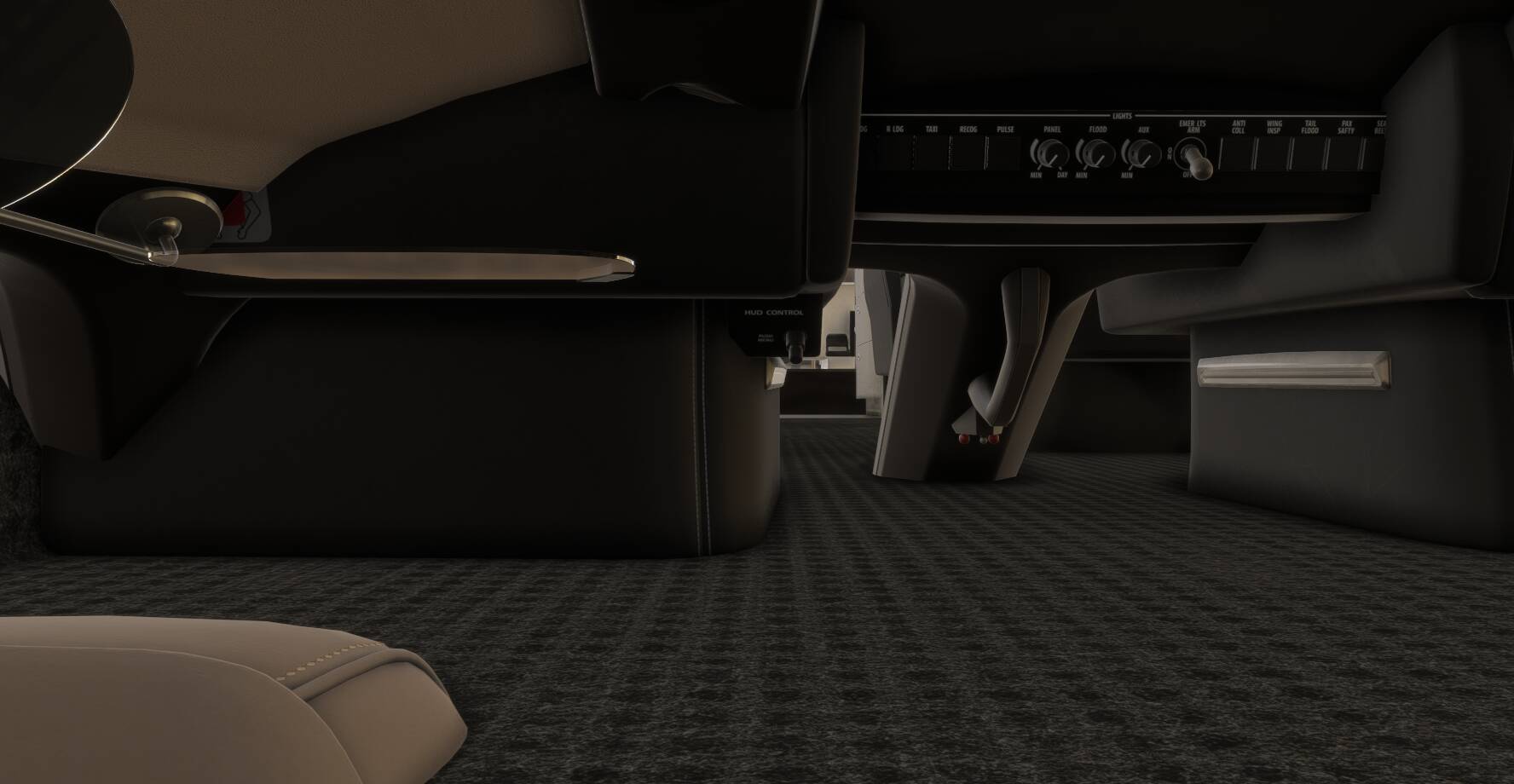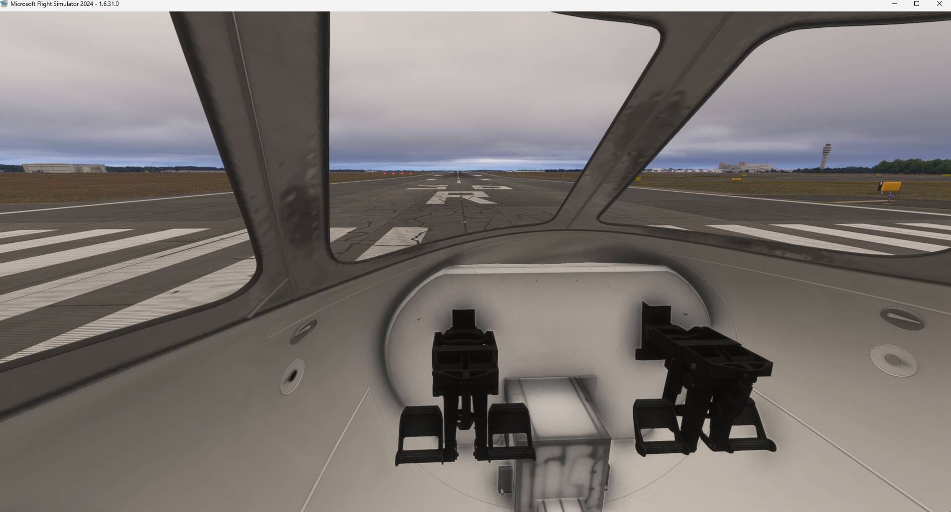 load default aircraft, no instruments visible, also black artifact underneath the body of the aircraft which bleeds through into the passenger cabin