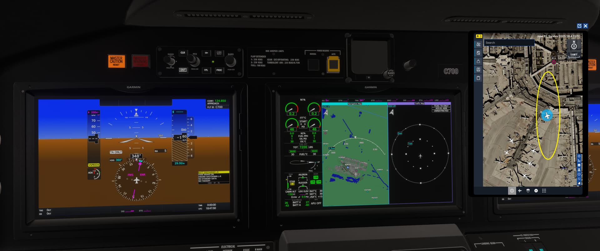 The own aircraft icon in the default EFB is a fighter jet for the default msfs-2024 cessna-citation-longitude. Other player’s C700 aircraft are displayed with the generic aircraft icon.