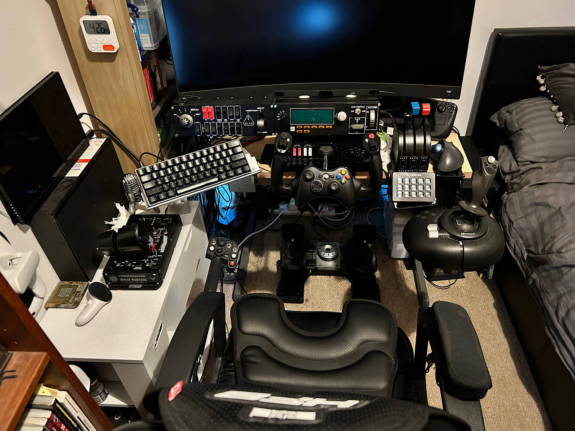 I lost my own desk completely when I put the yoke in but I did get a foldable side desk extesion from Amazon which lets me have a side keyboard. I also got my roll of bodge tape that you recommended a few days ago, so things are looking up!