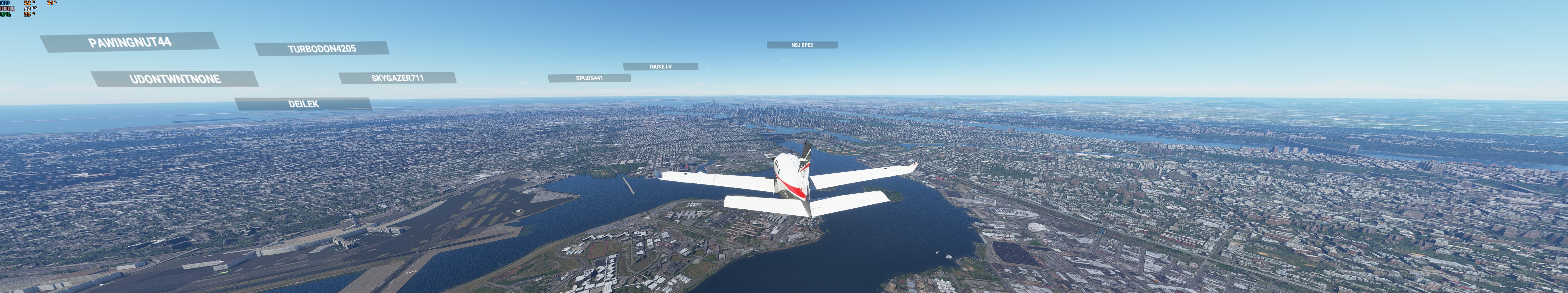 I have a mid-range computer at best - i5-9500, NVDA 1060, 32GB RAM, so I don’t expect miracles. I can usually fly in the low 20s frame rates even in some of the more complex airports, cities. I have tried flying repeatedly from KBOS to KEWR. I start of the flight is in the 20s and continues over Boston. Just southwest of Boston, by Norwood Airport, frame rates drop into the teens and then single digits. I haven’t had time to complete the flight, but this continues through to at least the LI Sound.