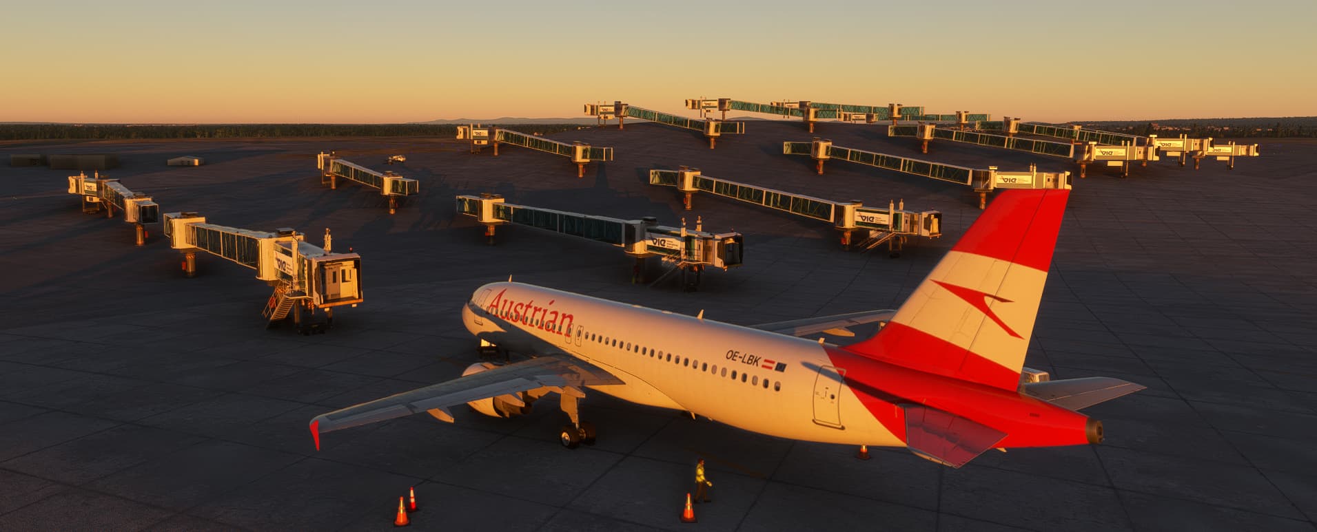 LOWW (default scenary) has a hill now where pier north should be. Only the jetways are visible