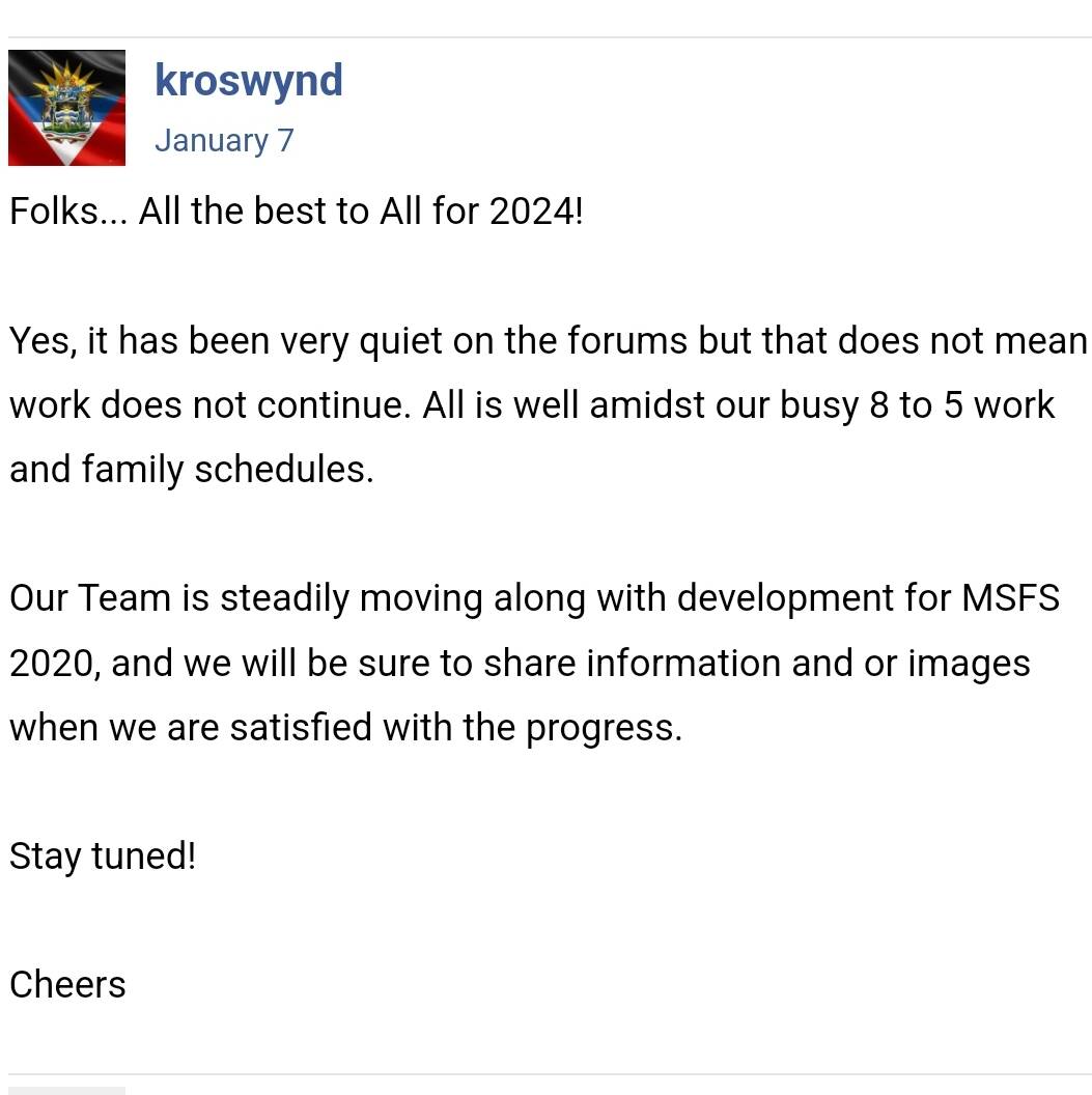 I feel like this is another case of a developer - knowing they historically gained a huge amount of trust and credibility in the community by delivering the preeminent depiction for a prior sim - sitting on a product and dissuading others from competing due to their pedigree. Iām also wondering what they are telling other devs in back channels, as a lot of discussion does go on when possible to deconflict, and when this āweāre getting thereā will finally get old enough for some else to attempt the Q400 (and other DHC-8s for that matter).