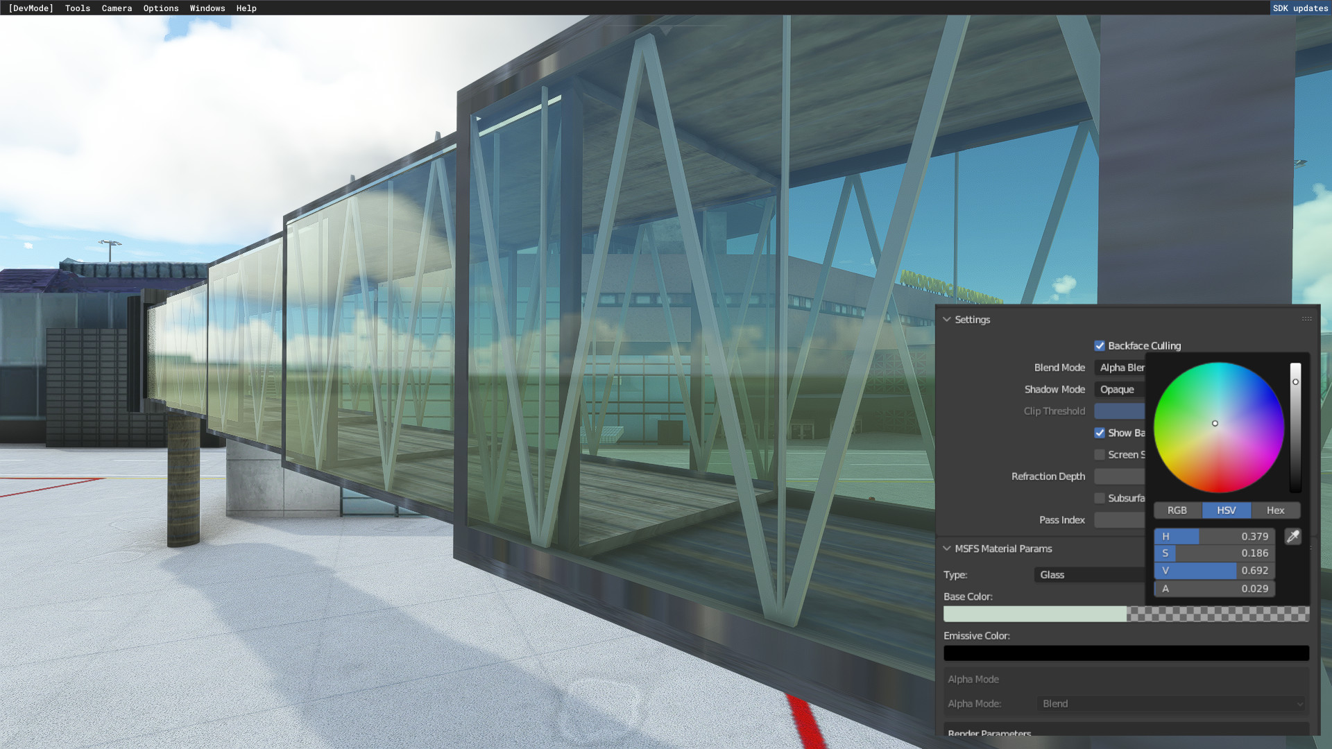 Will some kind soul please post up the settings to use in Blender with the new Asobo Exporter to make glass transparent with a slight blue tint. I’m quietly going mad mucjing about with Alpha Blends, metallic, etc.
