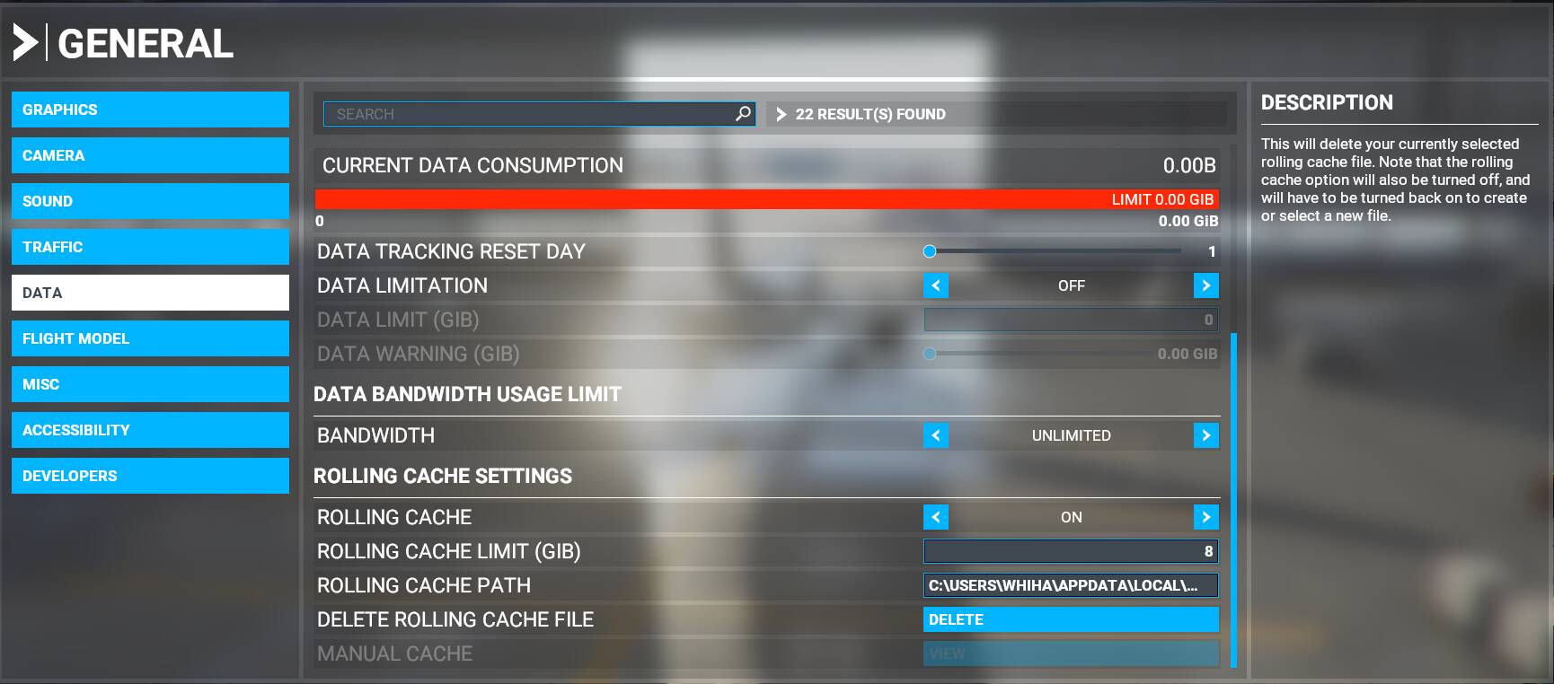 In order to have access to the manual cache, you have to activate Bing streaming and photogrammetry, even if your brandwidth does not allow it: this activates the manual cache.