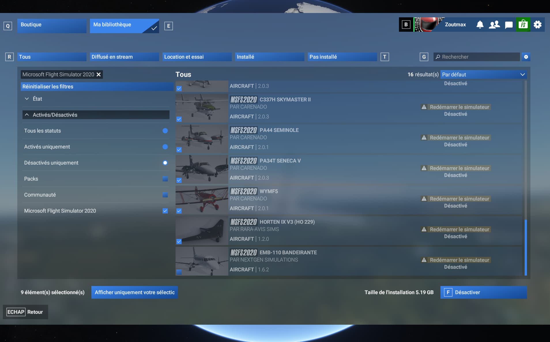 Had previously enabled multiple planes and 2020 marketplace sceneries that were working fine. Today MSFS2024 had reset multiple graphic settings and reduced rolling cache to zero. All previously enabled 2020 content had disappeared. Reset up cache and graphic settings and re-enabled all previously enabled content. Sim requires a restart to enable but after restarting sim content has not re-enabled and is back to disabled state. After multiple (10) attempts, some enable and some don’t, then some disable, then all disable.