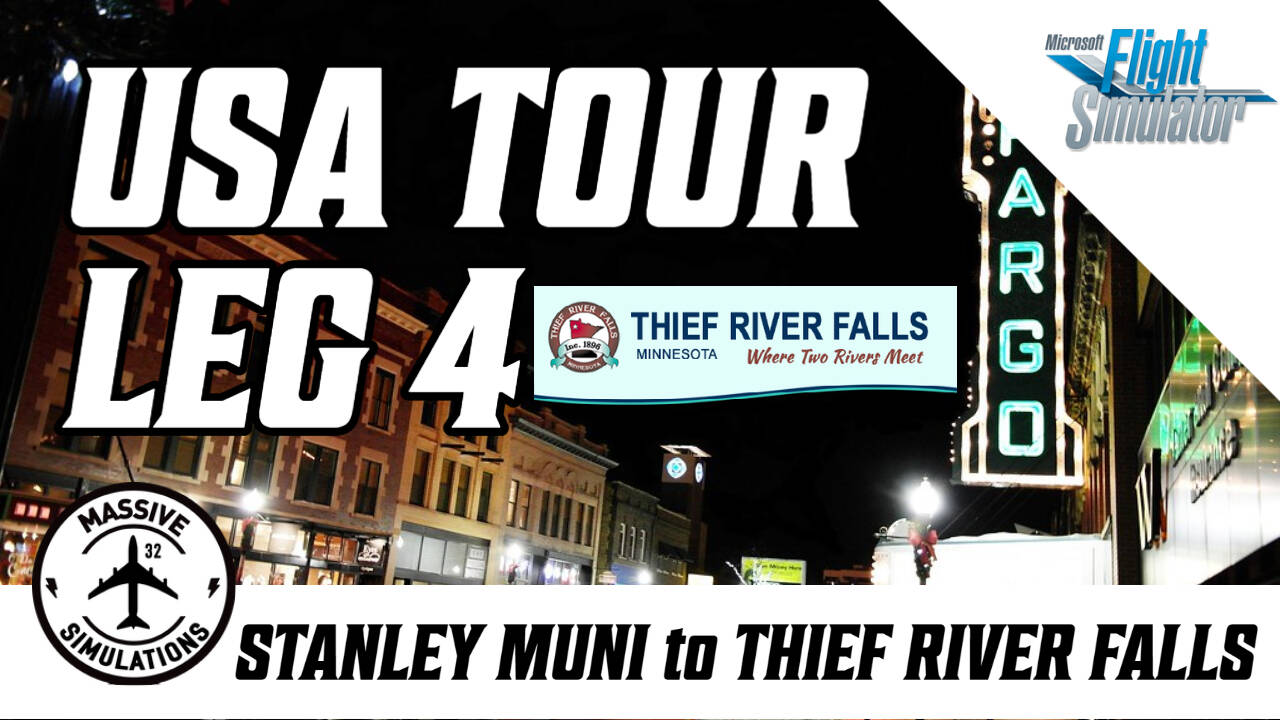 Good Morning/Afternoon/Evening. Leg 4 Details for the USA tour are now available. Heading out from Stanley Muni we will make our way East to Thief River Falls, Minnesota. This will be an amazing leg as we pass over Minot, Devils Lake, Spirit Lake Reservation and Grand Forks. As usual we will depart from West USA Server at 9:30PM AEST/11:30AM UTC. See you all there and flight plan file will be posted up soon.