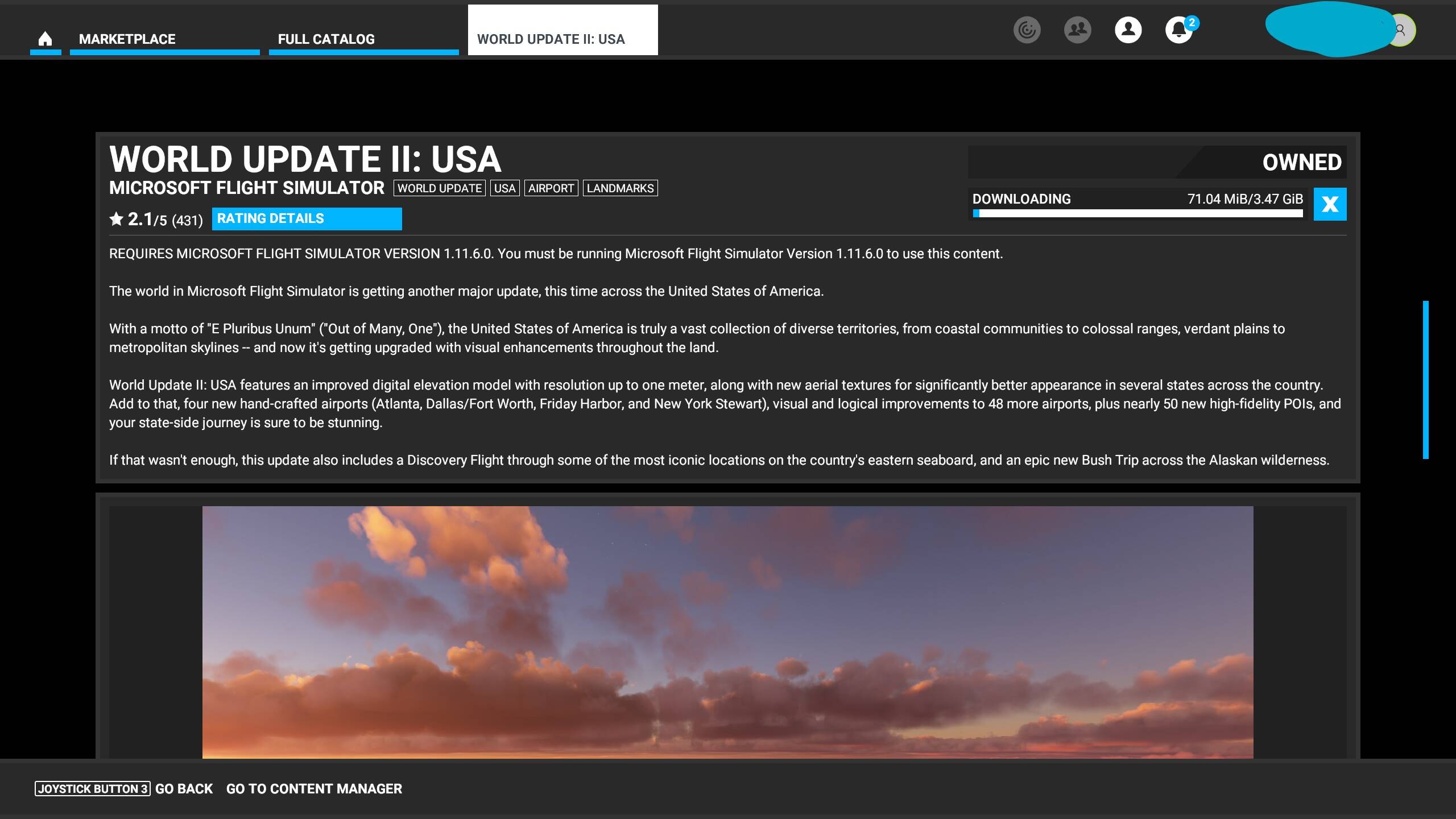 If you go back to the MARKETPLACE section, the World Updates may still only be listed as OWNED, but if you click on FULL CATALOG, you should see INSTALLED.