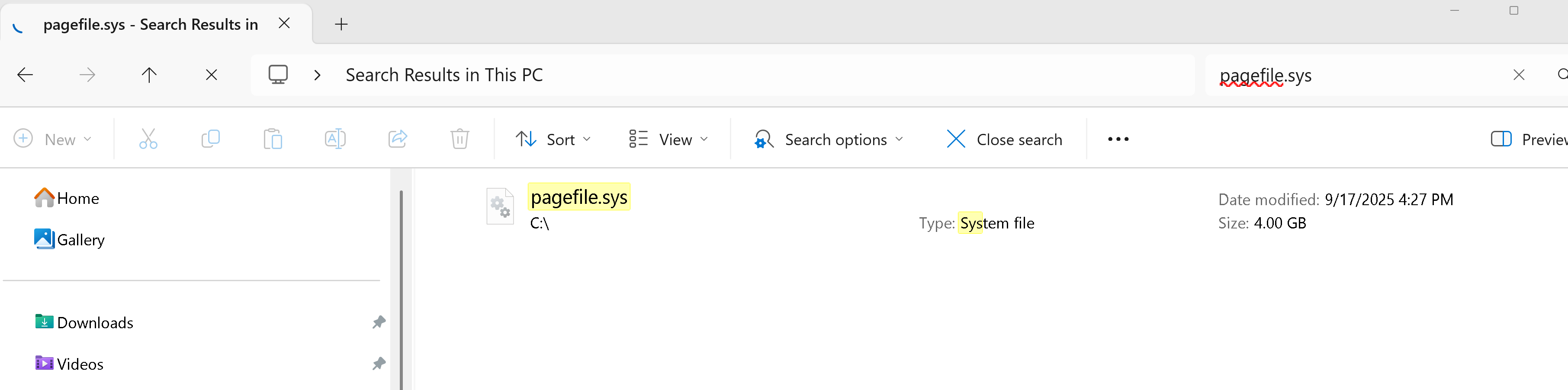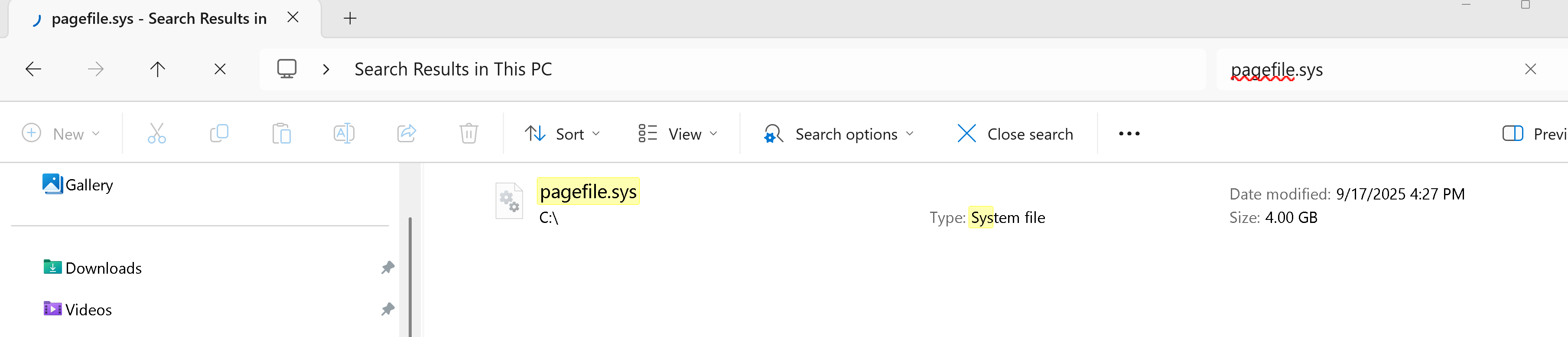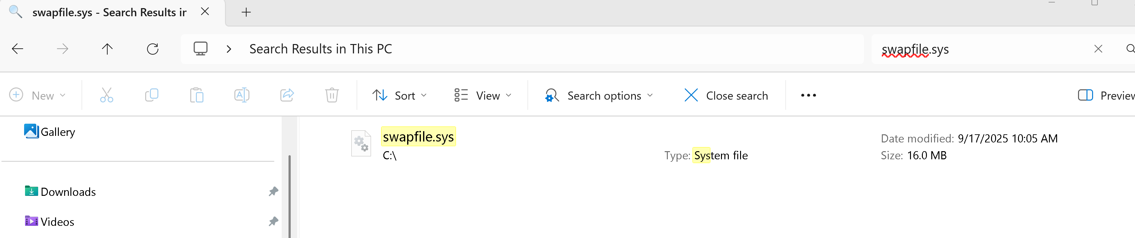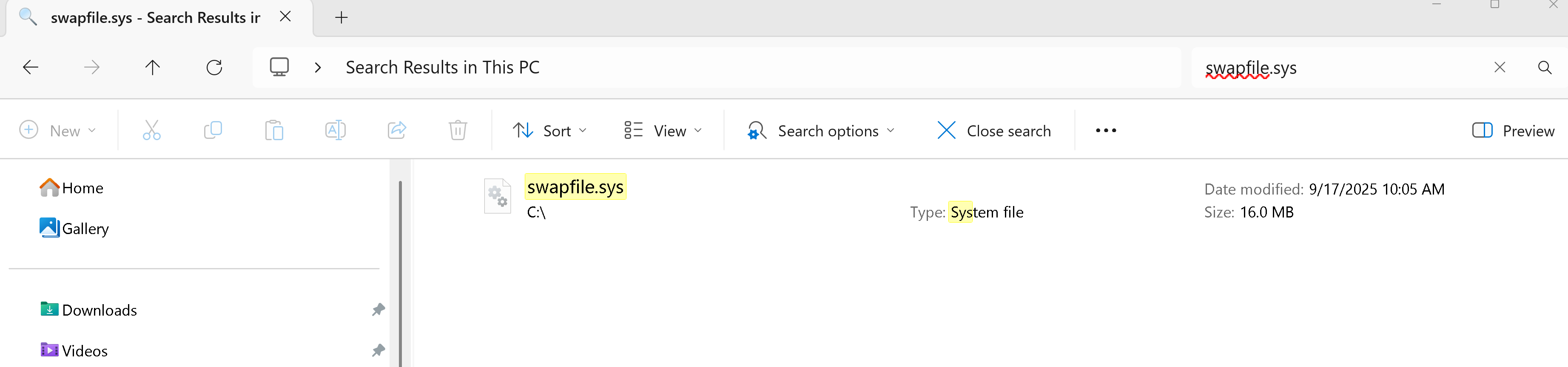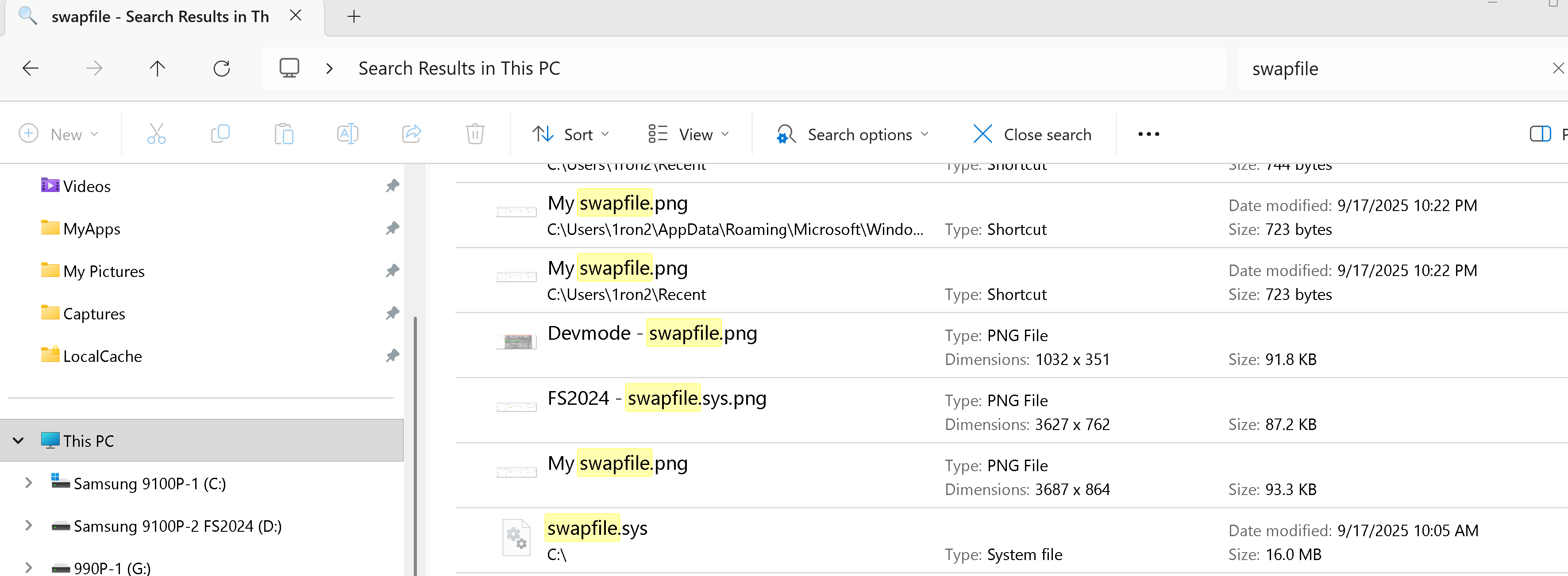 With FS2024 running and search âThis PCâ for âswapfileâ with no extension: