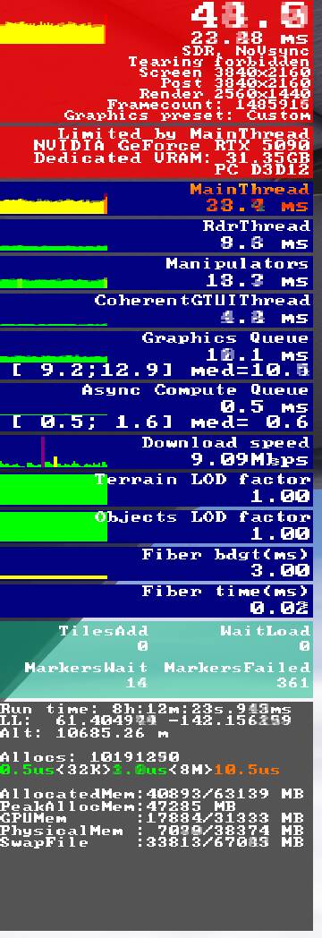 Thats the problem, I cant enjoy my flying. Because when the swapfile gets higher and the physical mem usage gets low the sim turns into a stutter fest. It starts out smooth with both being almost equal. When physical ram usage drops the performance drops too.