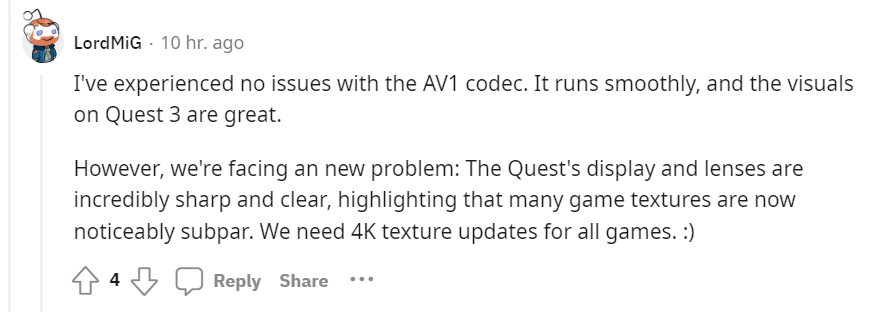 It’s different with the Quest 3 though. That amount of pixels is so close, it’s going to come down to how much of the clarity is accessible across the whole panel and we know this is vastly superior on the Quest 3.