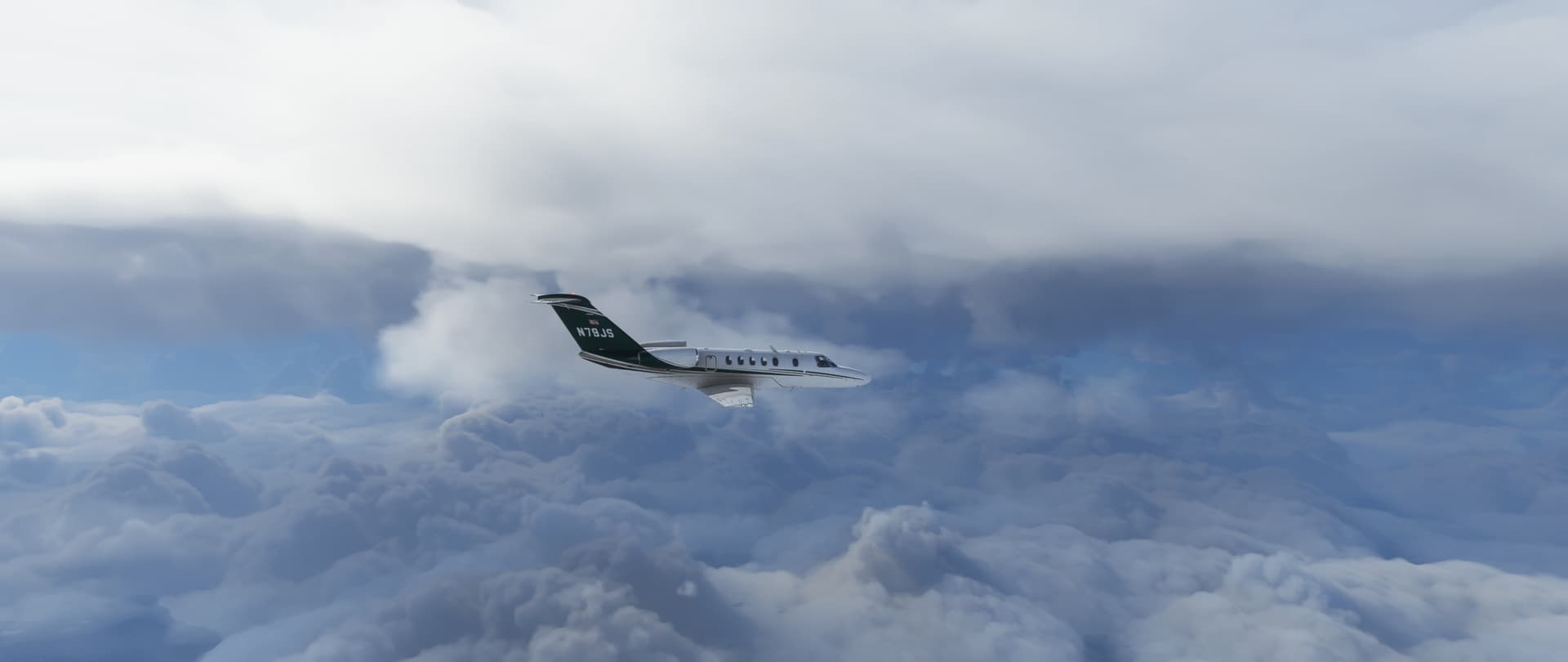But as MSFS is not capable of displaying a high-reaching, multilayered cloudscape of BKN SC/AC/AS/CS, as it would be typical for a warmfront, it displays a single layer of high reaching cauliflower puffs.