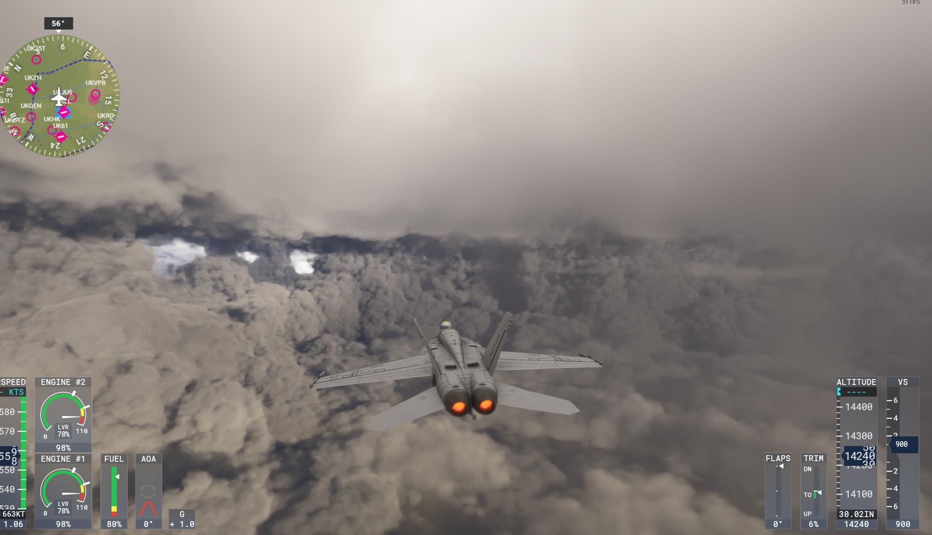2D texture clouds have several drawbacks. They look 3D when viewed from the cockpit, but their actual 2D nature was obvious in external views when viewed from above the aircraft - they would be seen as “billboards” that rotated to always face the aircraft as it moved forward.