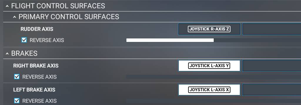 My sim sensitivity screen doesn’t resemble anything anyone else has. My left brake barley moves starts at the bottom My right brake starts in the middle and looks like the rudder and from the middle goes to the top. the rudder works for now like it should. I have a screen shot of what I am looking at in one of my posts.