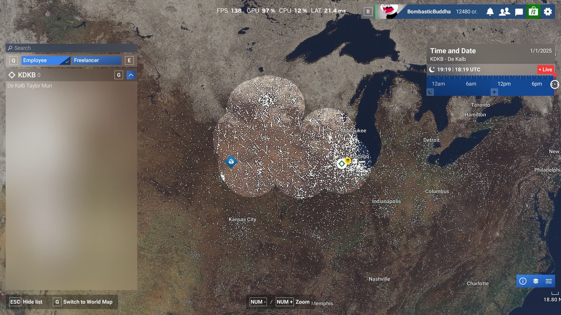 and the sim itself is loading slowly, 14% crawl, the graphics are extremely poor today, Minecraft like. and the world map is loading incorrect data, KORD’s old layout is loading again and upon choosing kord to take off on the selected runway, the sim decided to load me in South America