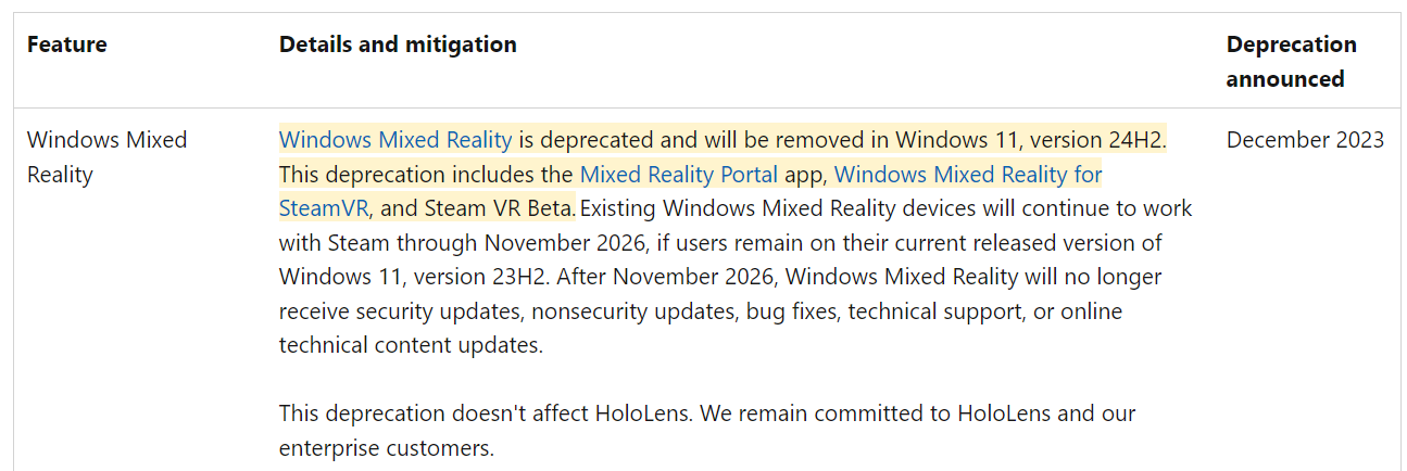 I hear you, though. Maybe someone will develop and market some sort of bridge software that will allow WMR devices to continue working with 24H2 and beyond.
