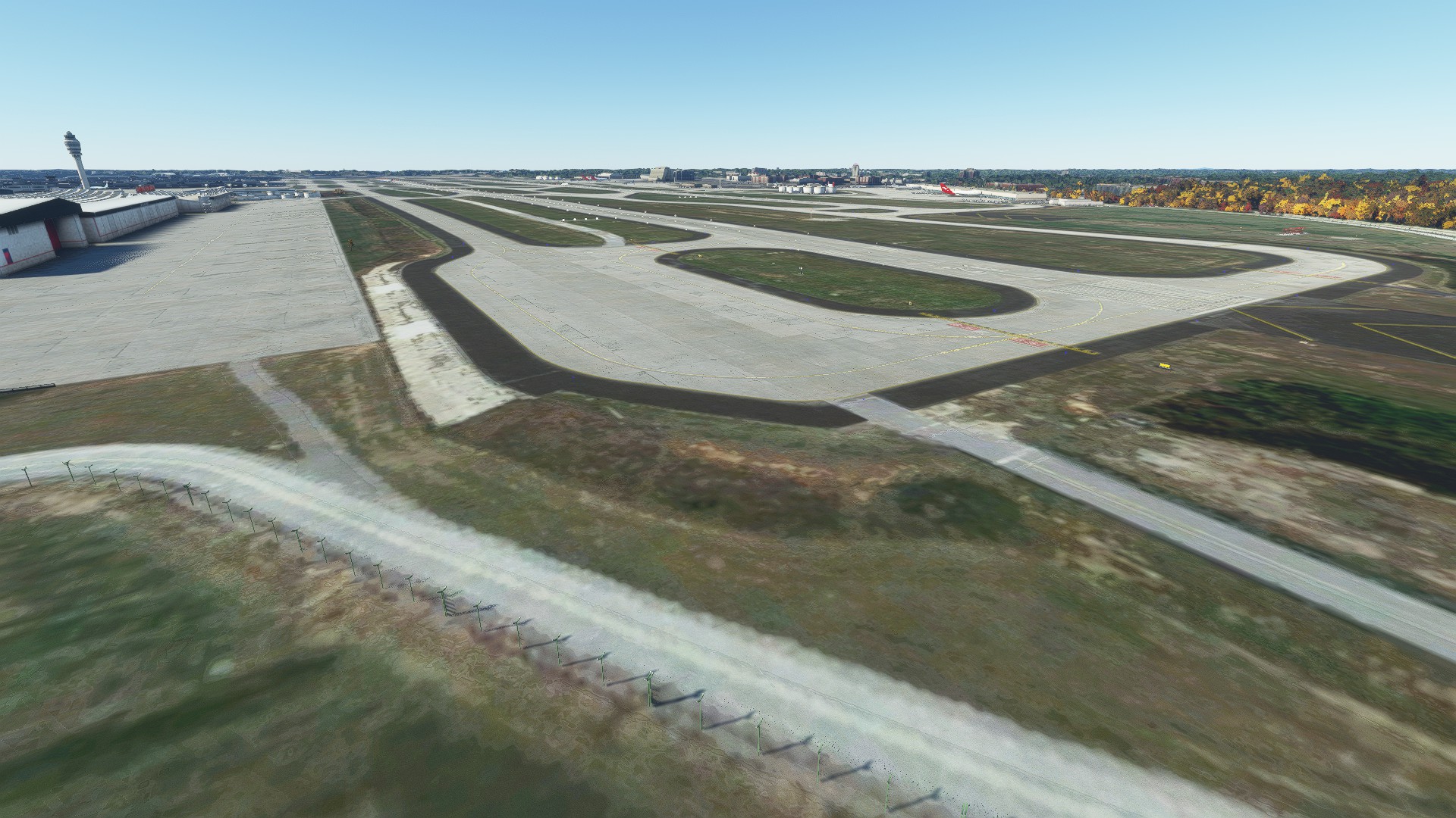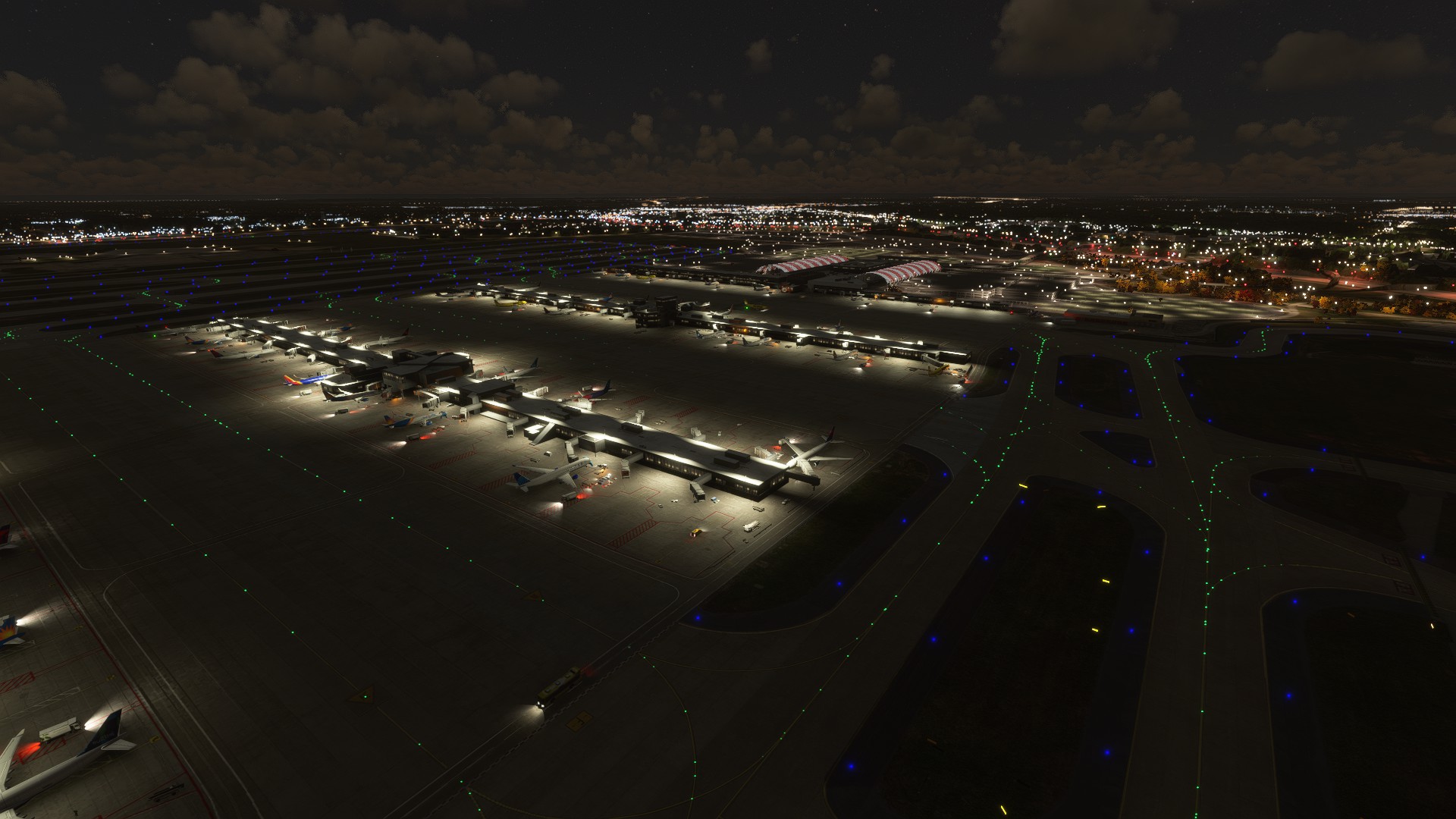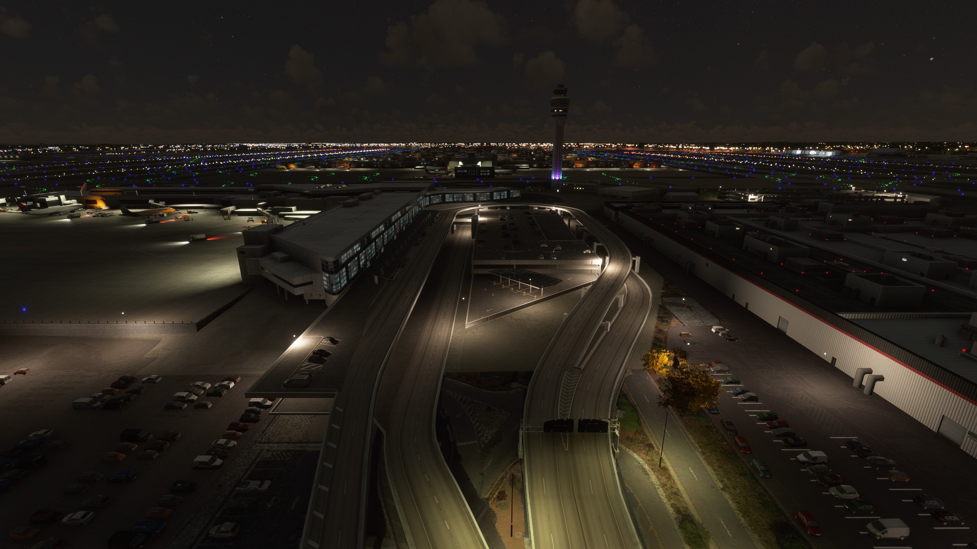 Externally, I think ImagineSim did a reasonable job modelling buildings. My gripes are the low resolution textures and the lack of internal modelling. I want to be able to see inside the concourses when I pull up to the gate. Still, the ImagineSim buildings generally seem to be truer to life than Asobo’s. The main terminal with the arch-like structures over the road is well done and the colored night lighting is great. Asobo didn’t do a good job with that at all. OTOH, Asobo did a better job with the other terminal entrance. I’d also imagine that Asobo didn’t get the parking right, although I didn’t confirm. Neither did a good job with the airport environment. The gate areas are too bare. I just did a pretty cursory glance at the Asobo version though. I wouldn’t say that the ImagineSim version is hugely better than the Asobo version, which I find frustrating given the price.