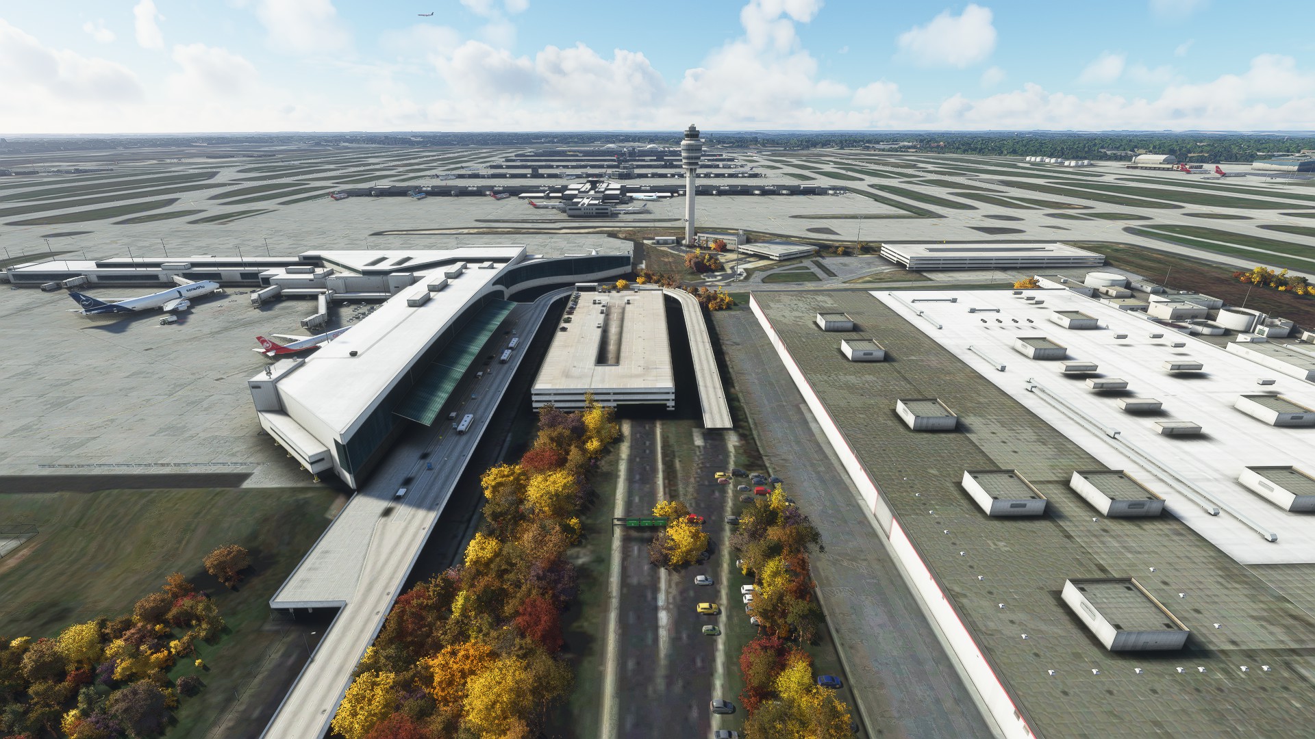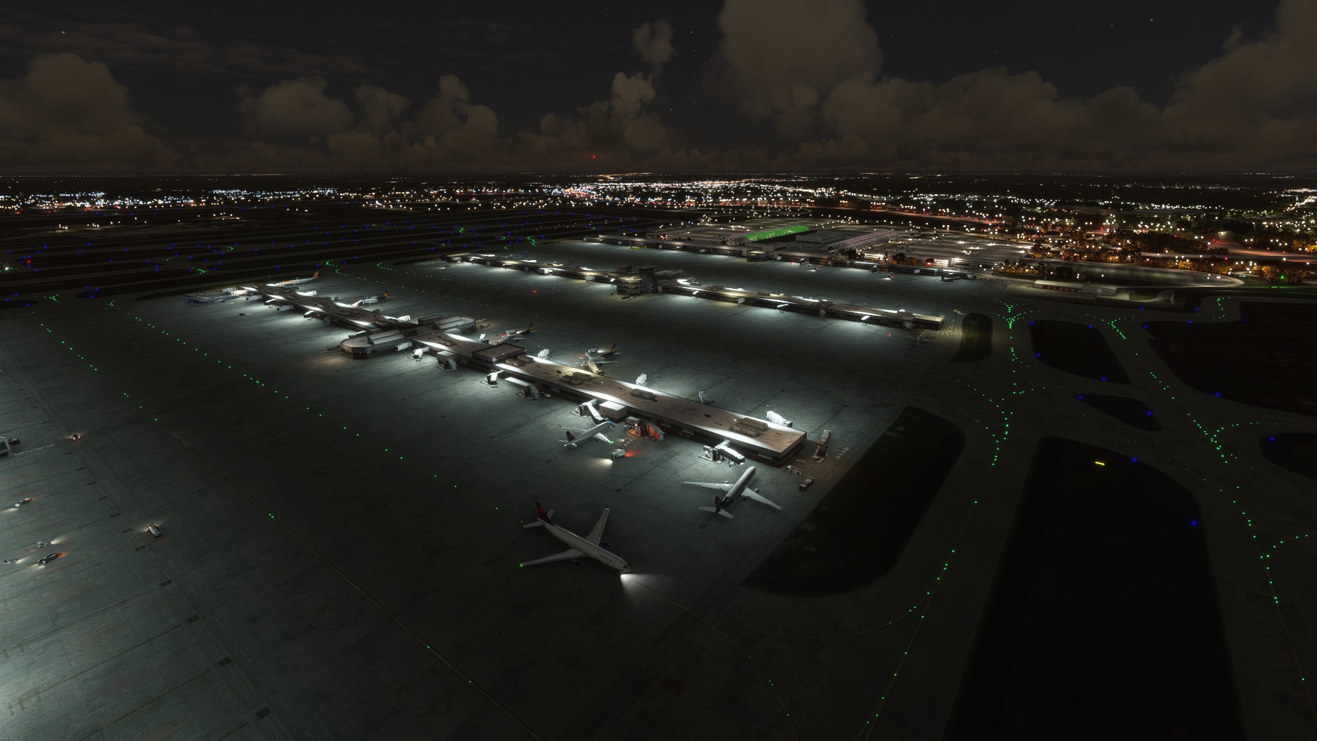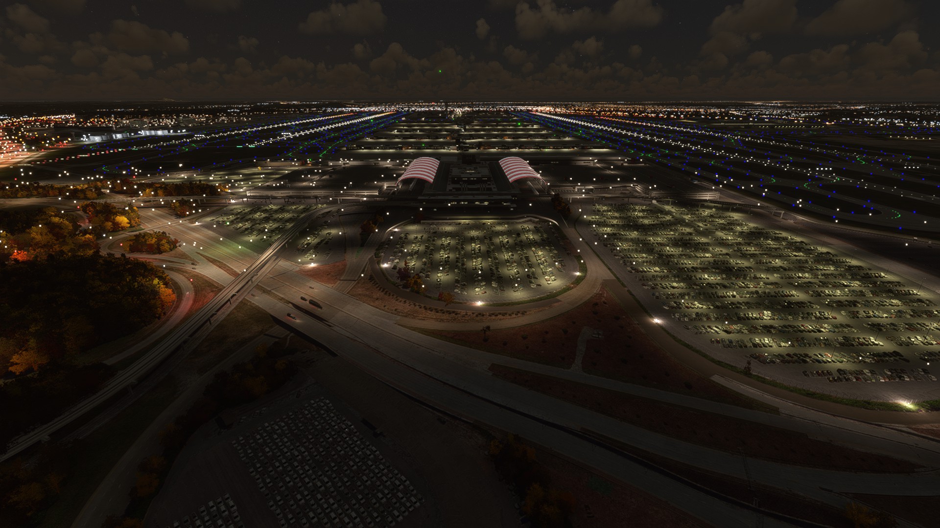 Externally, I think ImagineSim did a reasonable job modelling buildings. My gripes are the low resolution textures and the lack of internal modelling. I want to be able to see inside the concourses when I pull up to the gate. Still, the ImagineSim buildings generally seem to be truer to life than Asobo’s. The main terminal with the arch-like structures over the road is well done and the colored night lighting is great. Asobo didn’t do a good job with that at all. OTOH, Asobo did a better job with the other terminal entrance. I’d also imagine that Asobo didn’t get the parking right, although I didn’t confirm. Neither did a good job with the airport environment. The gate areas are too bare. I just did a pretty cursory glance at the Asobo version though. I wouldn’t say that the ImagineSim version is hugely better than the Asobo version, which I find frustrating given the price.