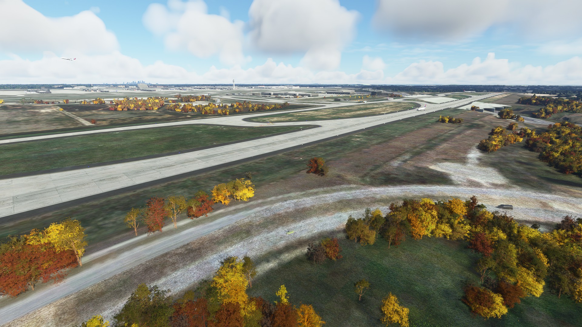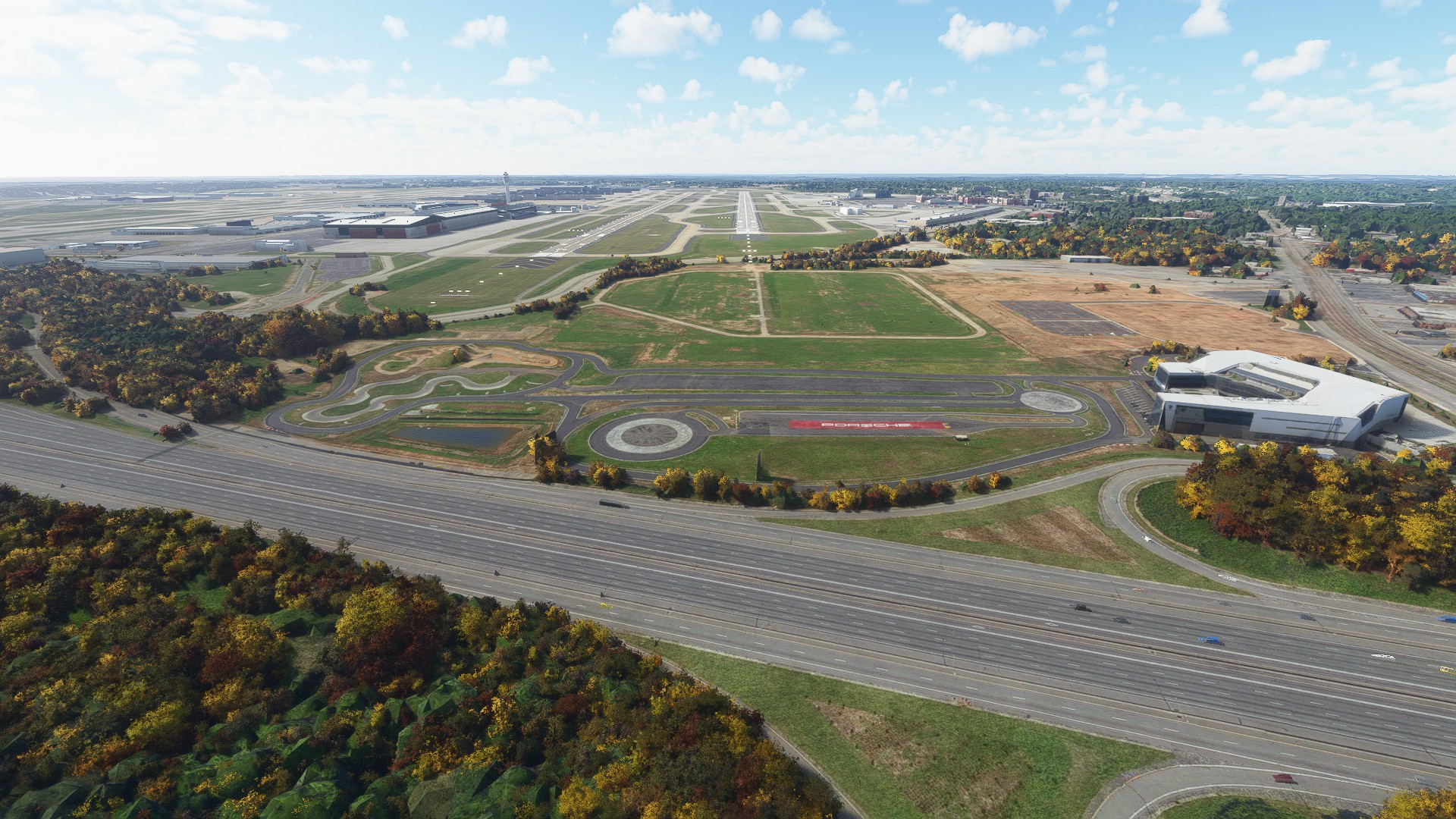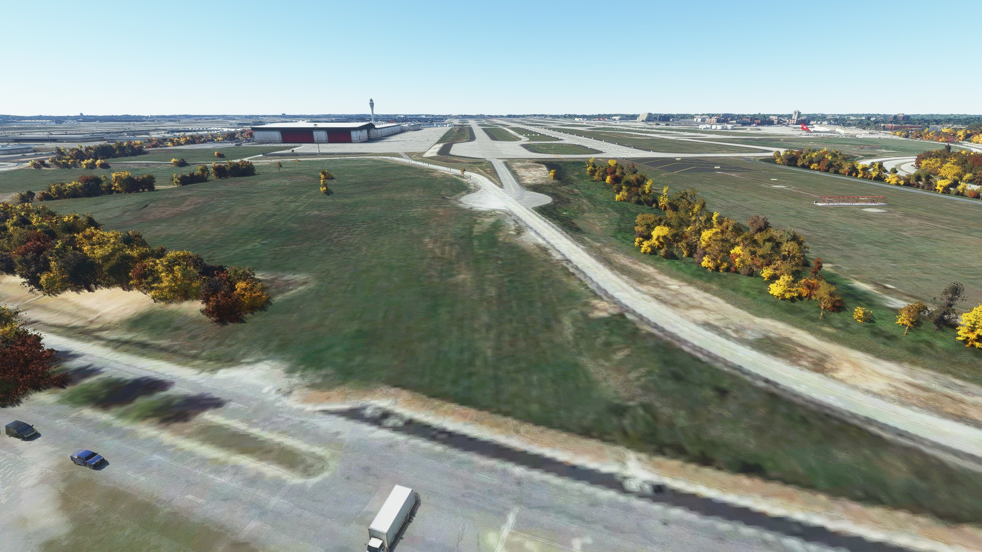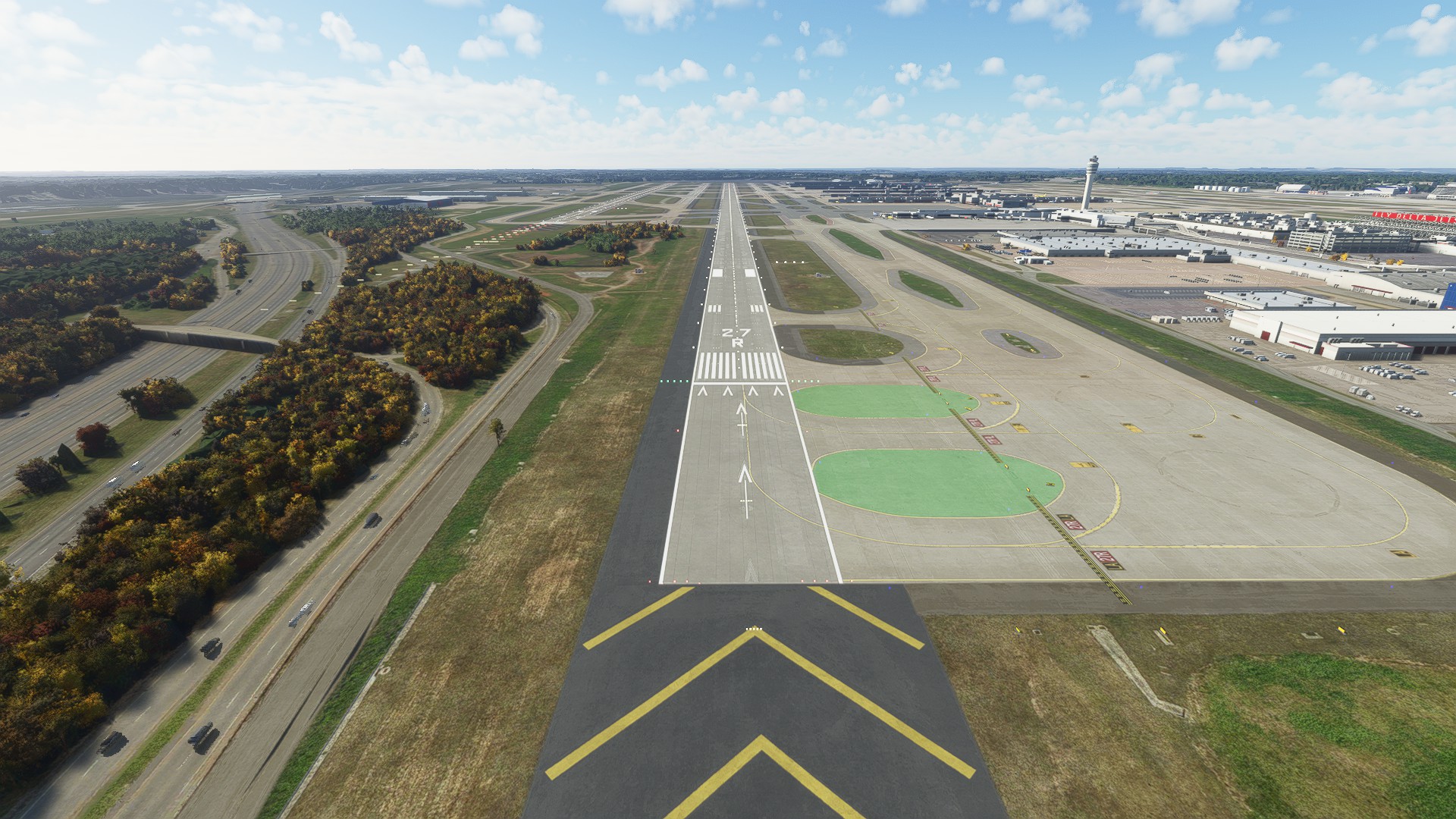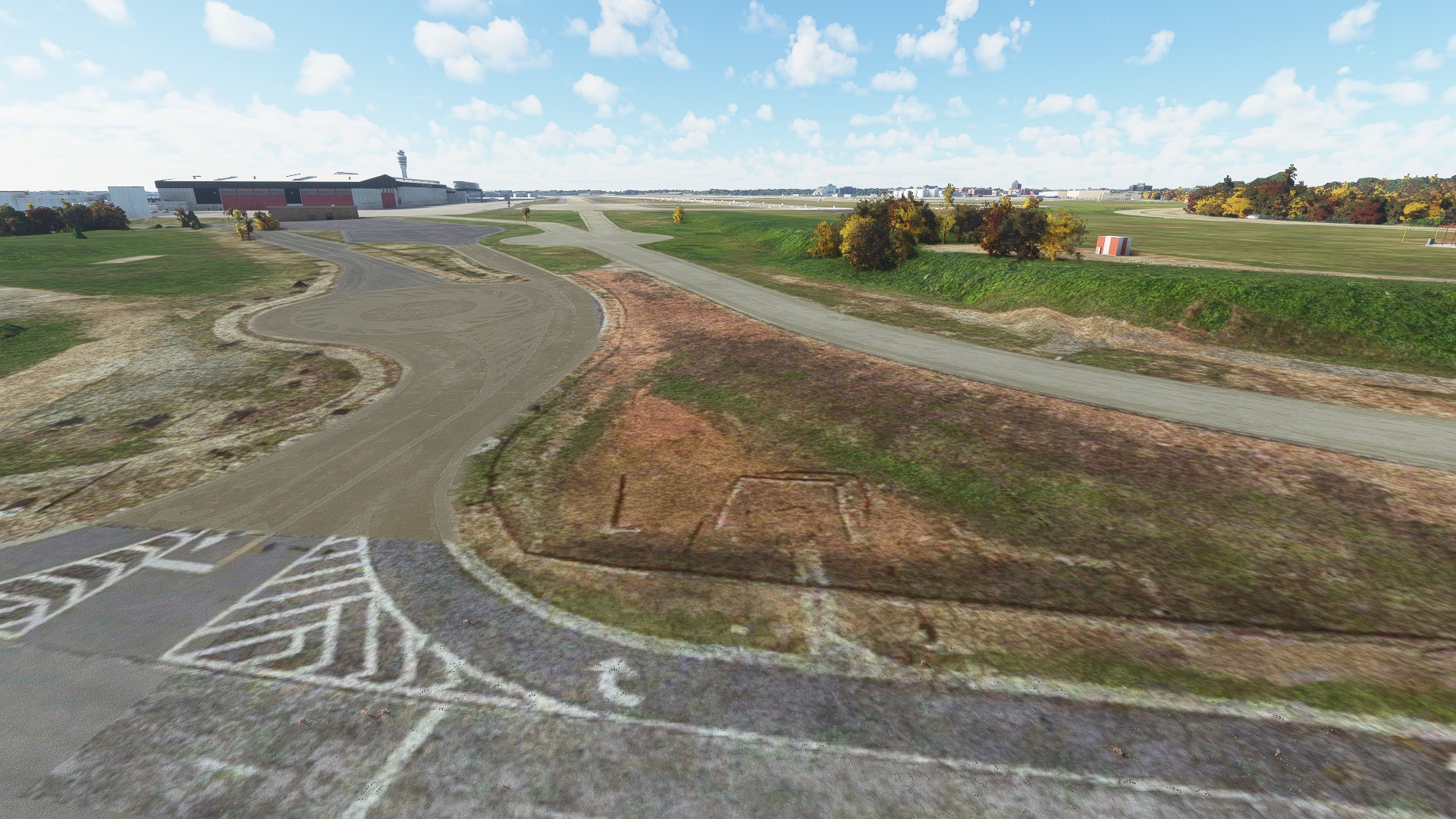 Runway 10/28 sits on a plateau in real life. The payware scenery doesn’t do a good job replicating this. It looks flat when compared to Forrest Parkway and Riverdale Road that goes around runway 10/28. The handcrafted version captures this better.
