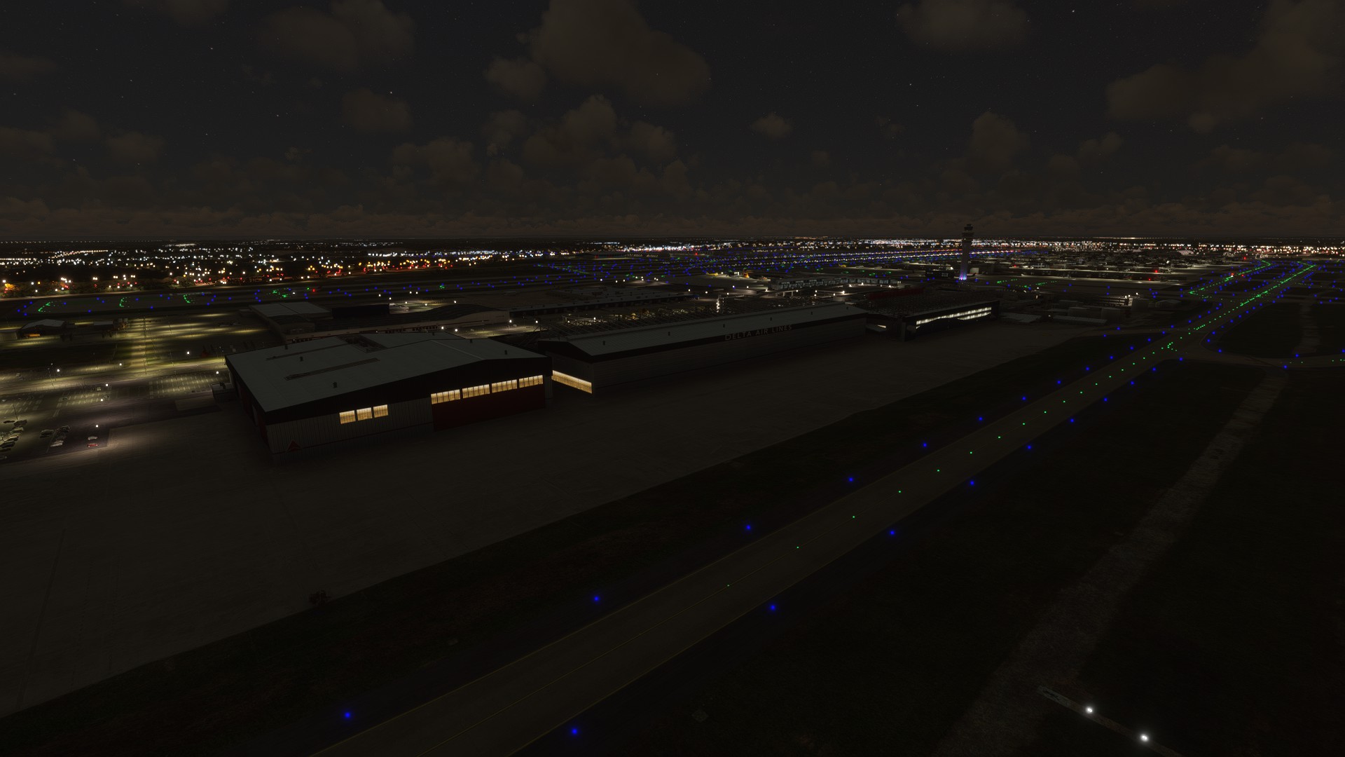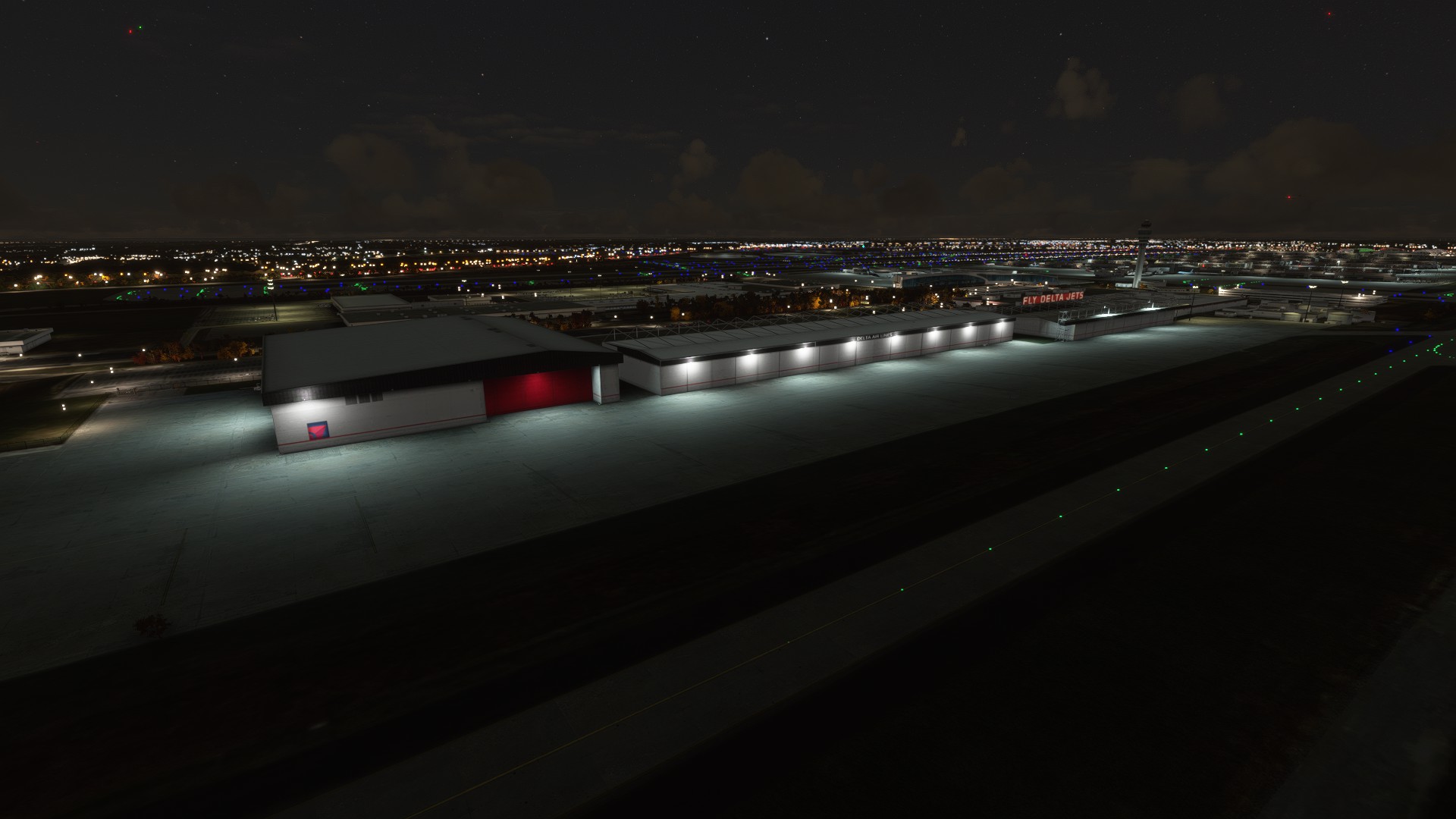 The control tower in the handcrafted version is much more detailed. At night you can see the light illumination from the base of the control tower. This feature is absent in the payware version. On the North side of the airport the handcrafted version blows away the ImagineSim version. Much more detailed on the scenery including the Delta Flight Museum.