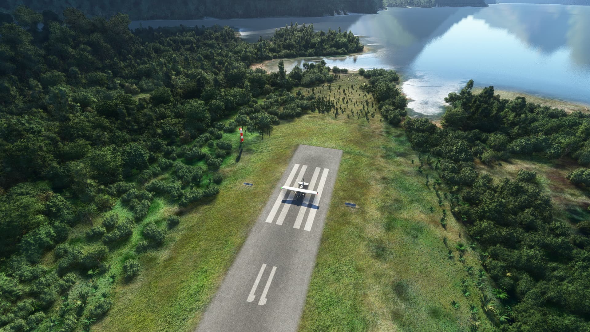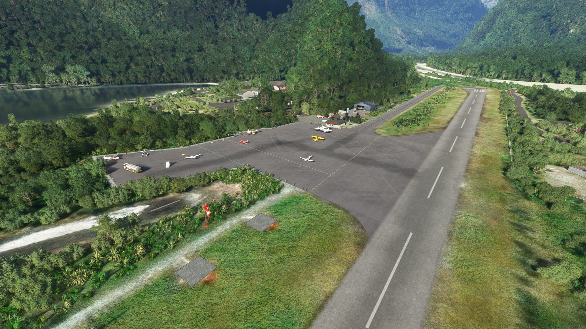 NZMF has three windsocks in the bespoke airport package. (Fortunately, they all behave properly with the wind.) The default airport (with NZMF uninstalled) has zero. Anyone flying into this airport without the airport package installed should be able to do so with accurate windsock placement.