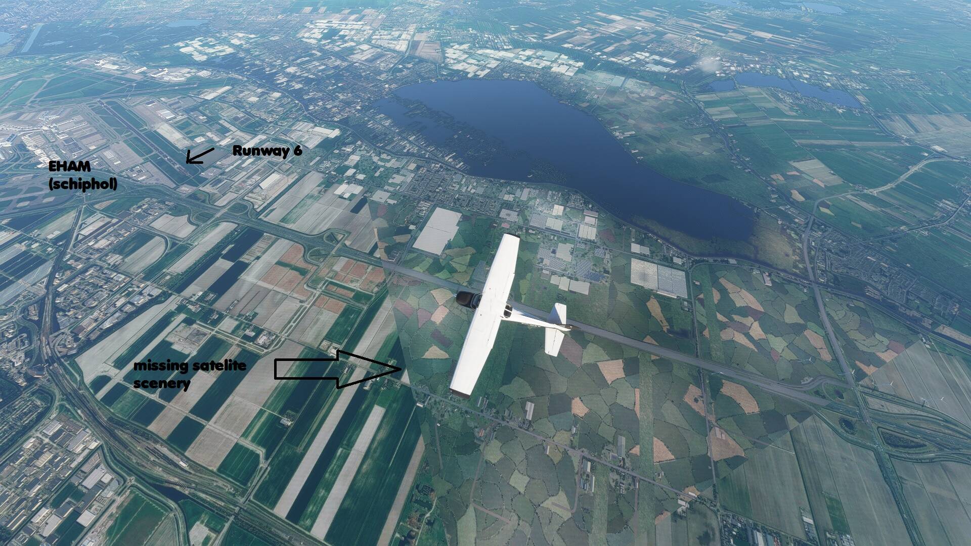 No BING satelite scenery on approach runway 6 EHAM (Schiphol). Provide Screenshot(s)/video(s) of the issue encountered: