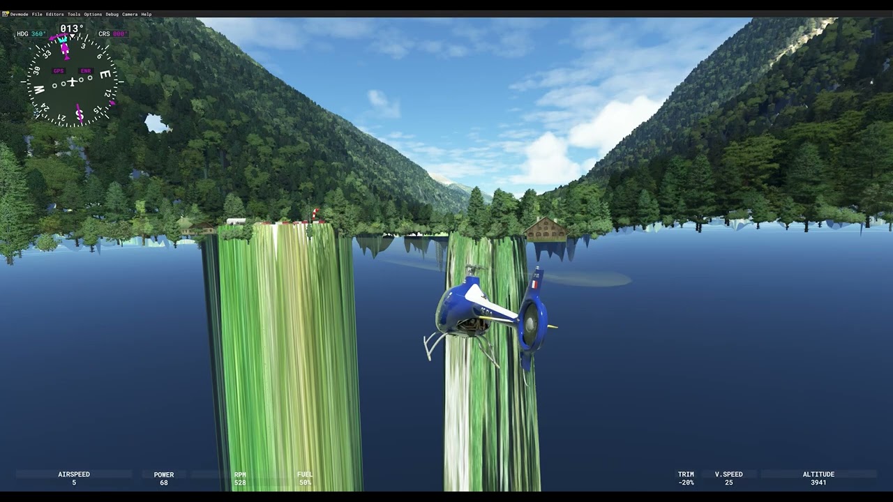 ground gets invisible when lowering the altitude. at some spots you can see through the ground/DEM and you can look “underneath” it. On some spots with missing ground you can land on it. I also found a spot in which you can fly “below the ground”