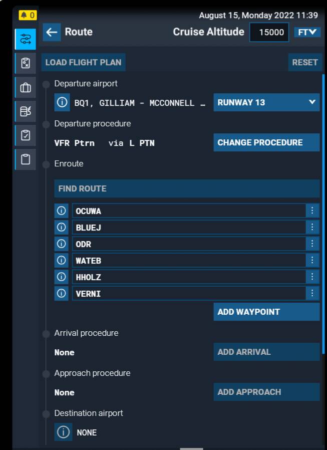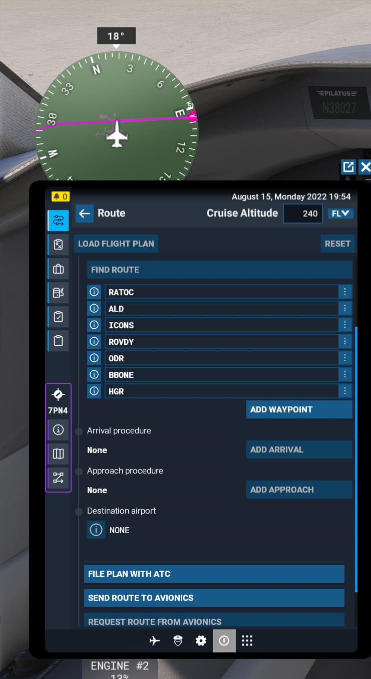 - Open the Flight Plan in teh G-1000. It’s partial and ends in mid-flight.
