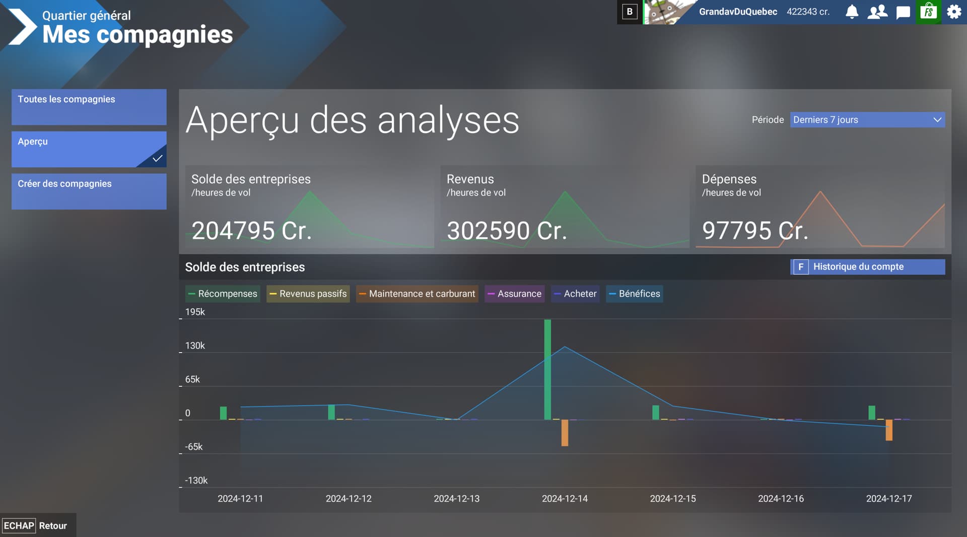 Moreover, when I left the game the day before yesterday, I had a sum of money for my company close to that shown next to my avatar, and today I have nearly 200,000 Cr less!