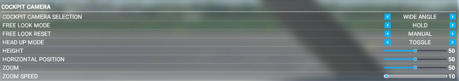 Go to options > general options > camera > cockpit camera > zoom speed.