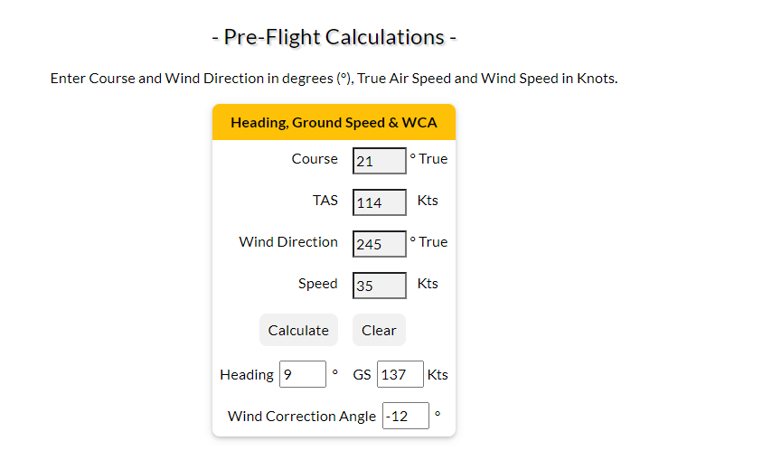 For every waypoint, input the true course (TC on the form), your KTAS (given on the power section of the form) Wind direction (estimate based on the Meteoblue map which give us estimated winds aloft of 35kts with a heading of 245). The calculation will look something like this: