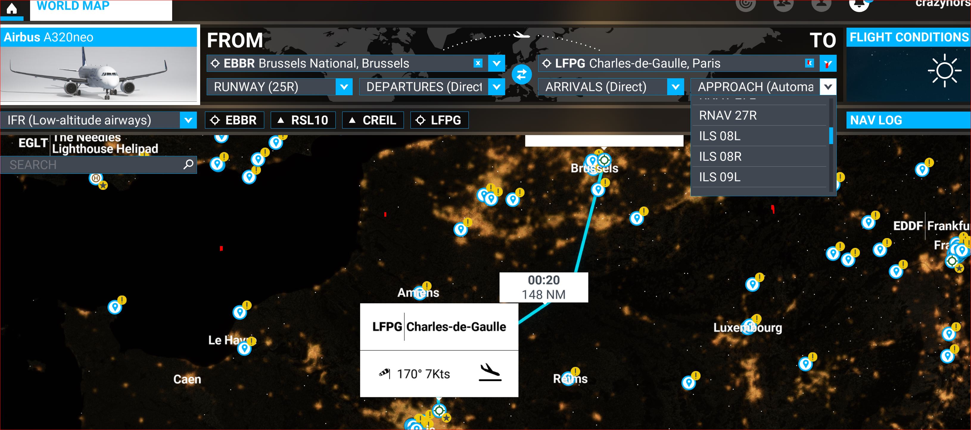 here is my screen shot, so i want to fly IFR to LFPG and can’t alter the approach to the runway of my choice ? it only says Approach automatic. ??? what has changed ? I usually select the runway and use ils approach no problems.