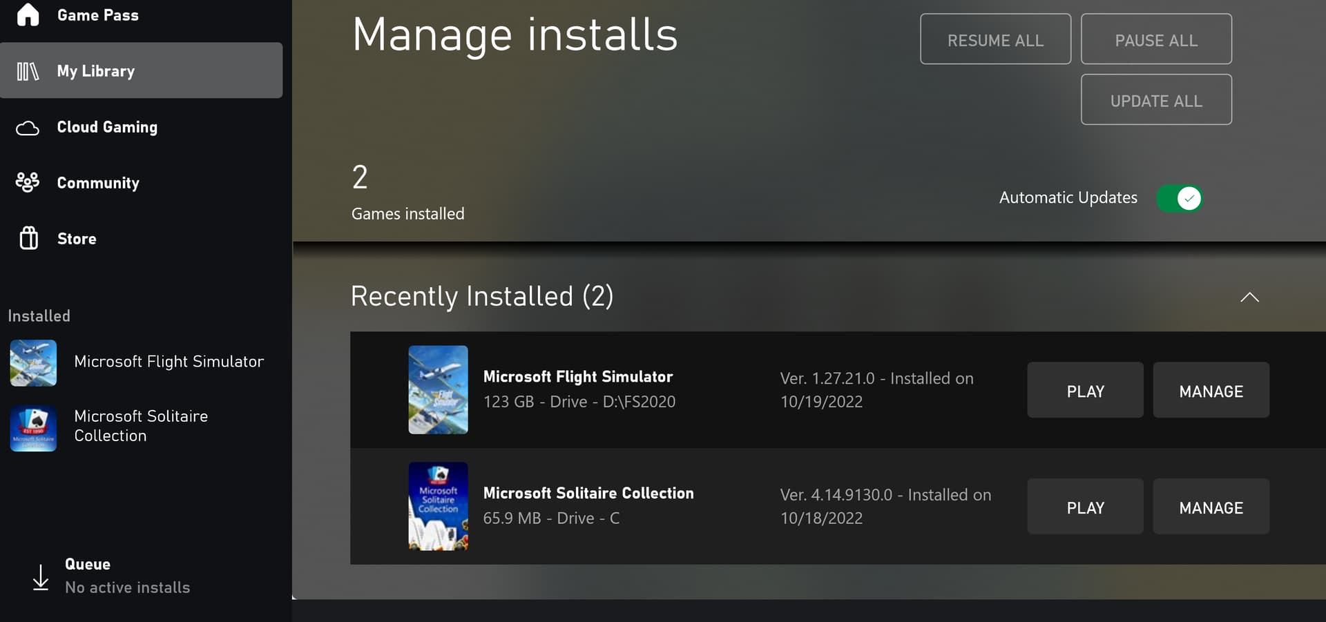 FS2020 would not launch from MS Store or Xbox app.