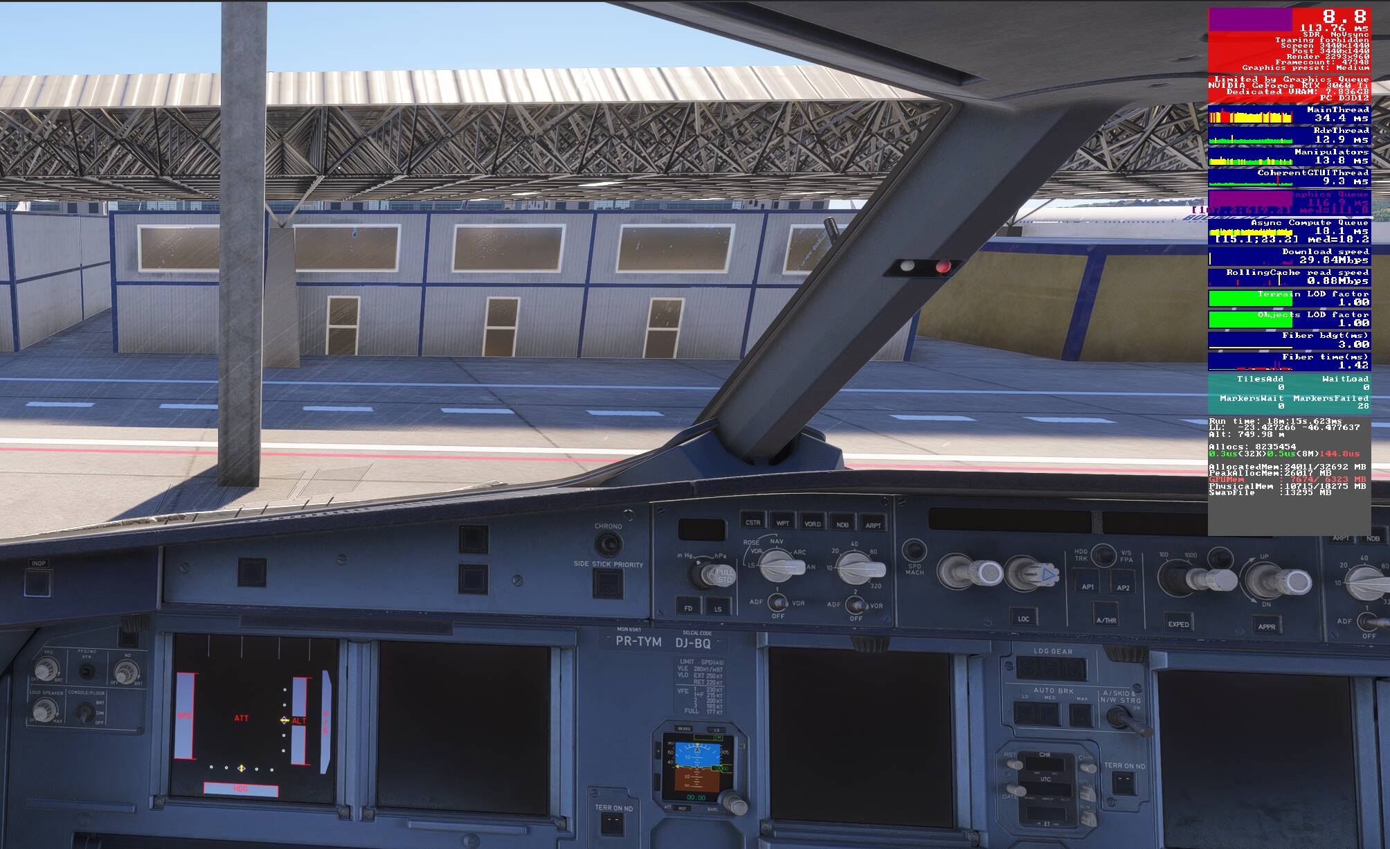 Launch msfs 2024 and place the aircraft on a runway with the engines running. Then go to settings > advanced options. Enable developer mode. Once the top menu bar appears, click the debug tab and select display fps. Return to the cockpit view and take a screenshot with the fps overlay visible and attach that screenshot in your reply.