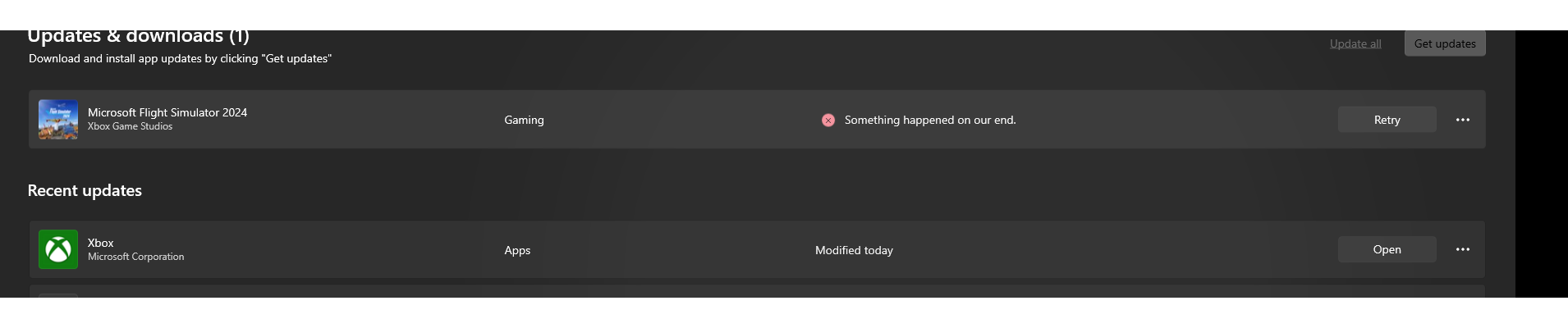 Can’t get msfs2024 to update in microsoft store and get the following error code.