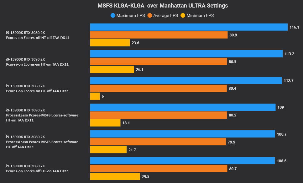 I get > 100 fps (using DLSS) on the 2D screen when running with Process Lasso but around 60 fps without it (same settings and situation). The reason is clear, I am CPU-limited (as are most of us) and the GPU could push out more but the CPU is lagging.