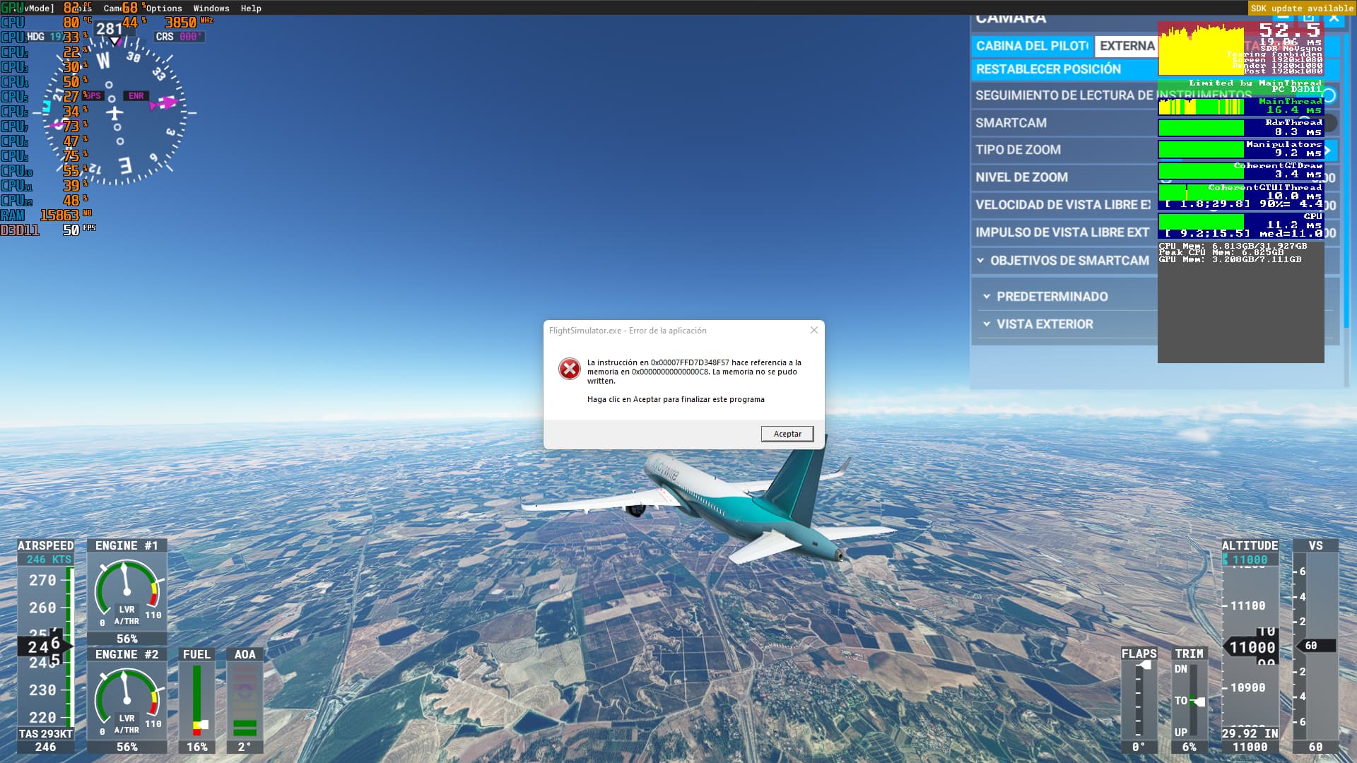 i haven’t had this error in weeks after applying vsync in the sim to cap the fps to 33 (i have a 100hz monitor).