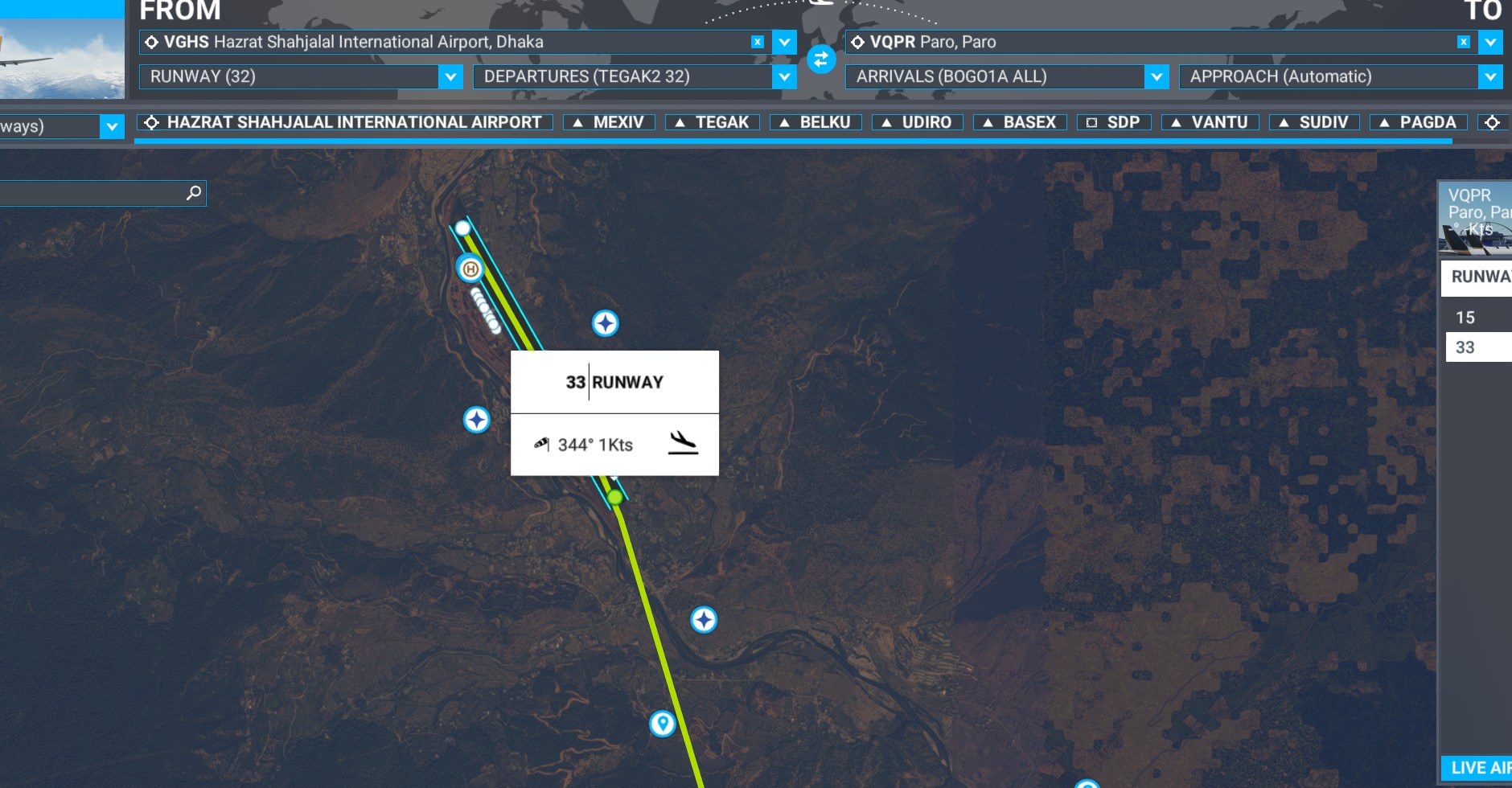 And as I guessed Paro Tower only offers 33. So I have to ignore them again. Great for immersion. I just want MSFS to accept the Simbrief Flightplan.
