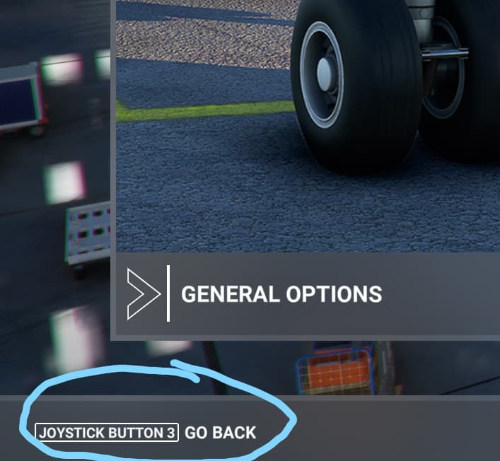 When you’re at the main screens in MSFS (General Options, Assistance Options and Controls Options) I see that the MSFS is asking me to use my joystick buttons to interact with the screens.