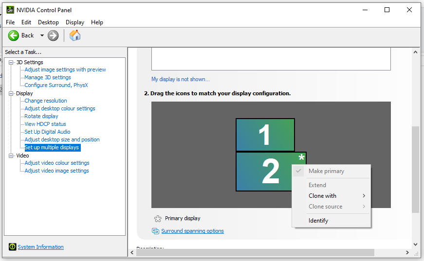 If you mean the Windows task bar, that usually goes on the primary display. Check the NVIDIA control panel → Multiple Monitor Layout.