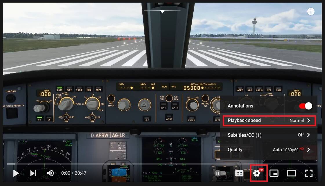 Click the gear icon, then select your desired playback speed.
