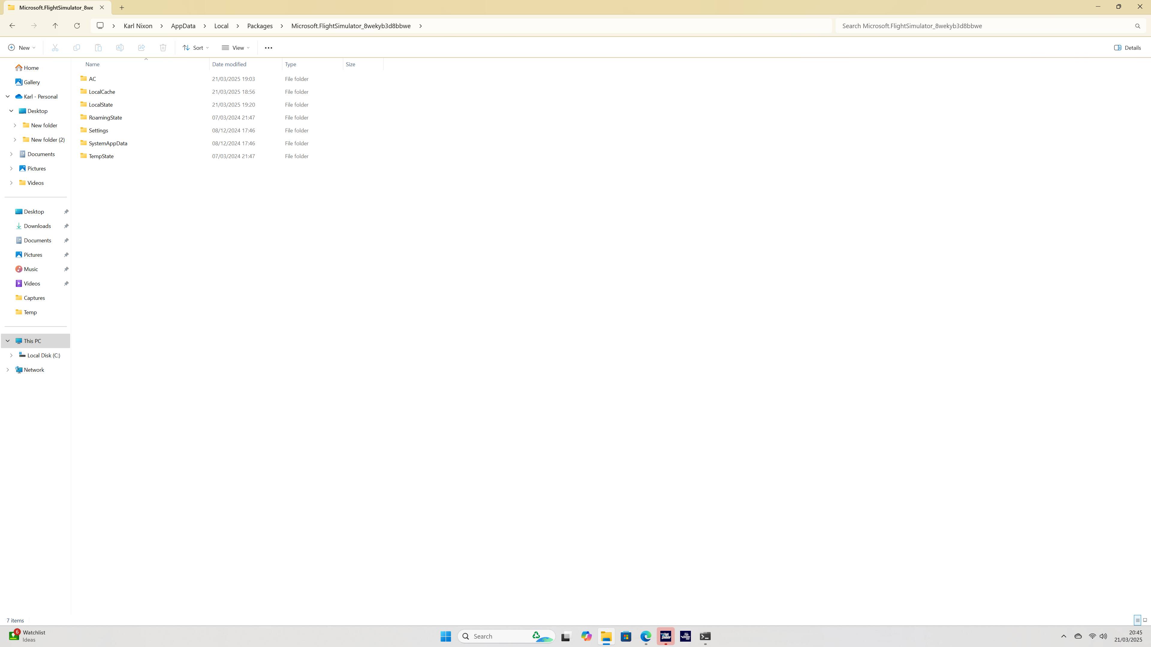 Due to a jittery mouse I think I’ve just accidentally moved a folder to another folder within my MSFS directory. All seems to be working but I’d prefer to undo any error I might have made; so would someone with the MS Store version mind checking the following folders against their own to see if anything’s out of place? Thanks.