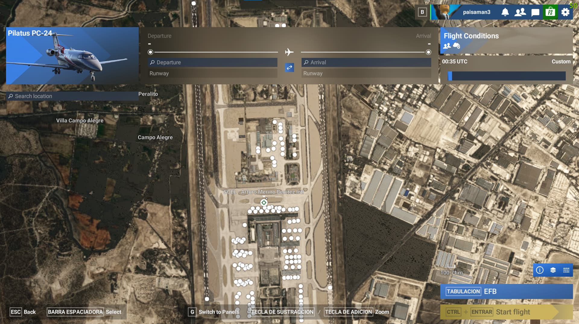 ICAO, coordinates, or specific location: Latin VFR SCEL - Santiago Chile