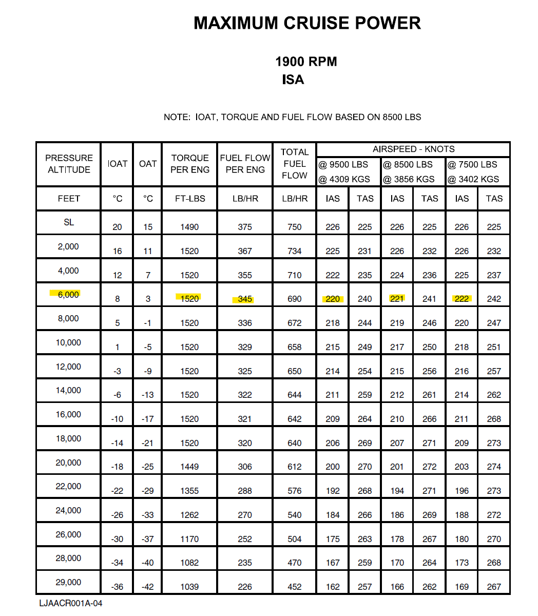 This is about 50% more fuel flow / hr / eng and about 20% slower.