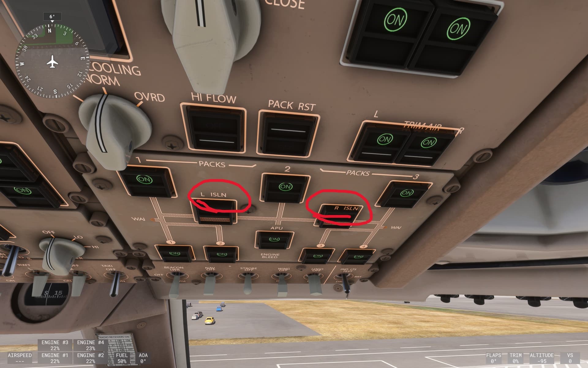 the light of the glareshield panel is also bugged, it shows 3 green lights above L INBD LWR CTR AND R INBD which is a bug as it should only light one