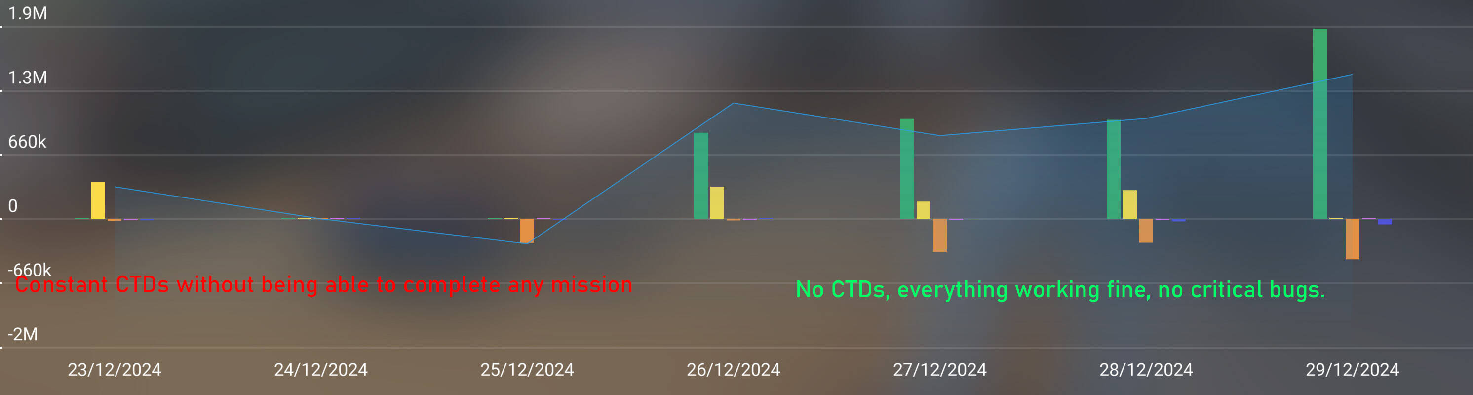 I couldn’t agree more… I can go hours back to back flight in the Fenix and all is good. A day later CTD after CTD same areas . I don’t get it. I can watch some of the more popular streamers go day after dal and all runs like butter and have similar set-ups to mine. Has to be a server issue. Very wild guess too…